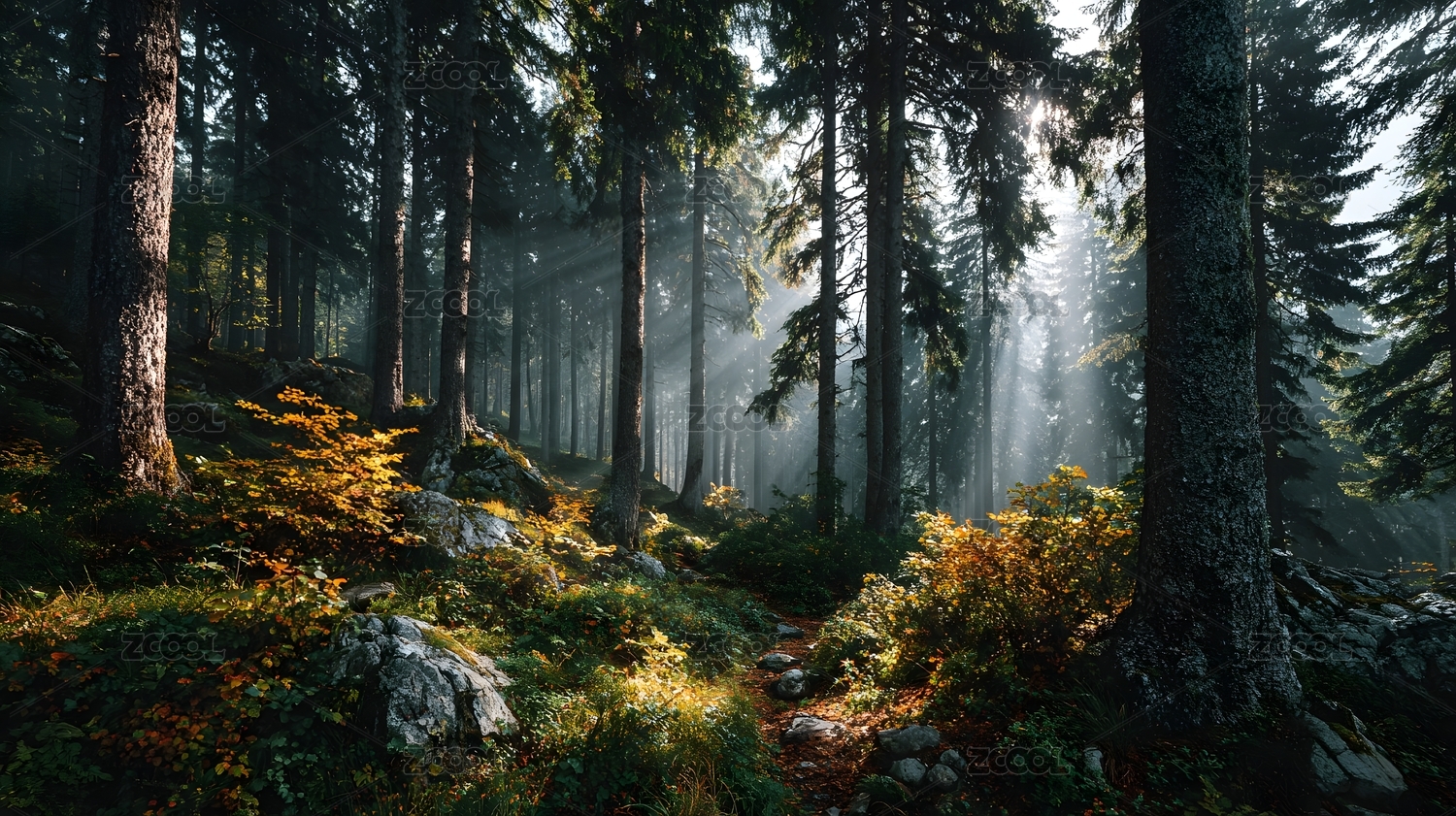 森林,自然,绿色,地面,树木,雾,树干,枝叶,蕨类,植被
