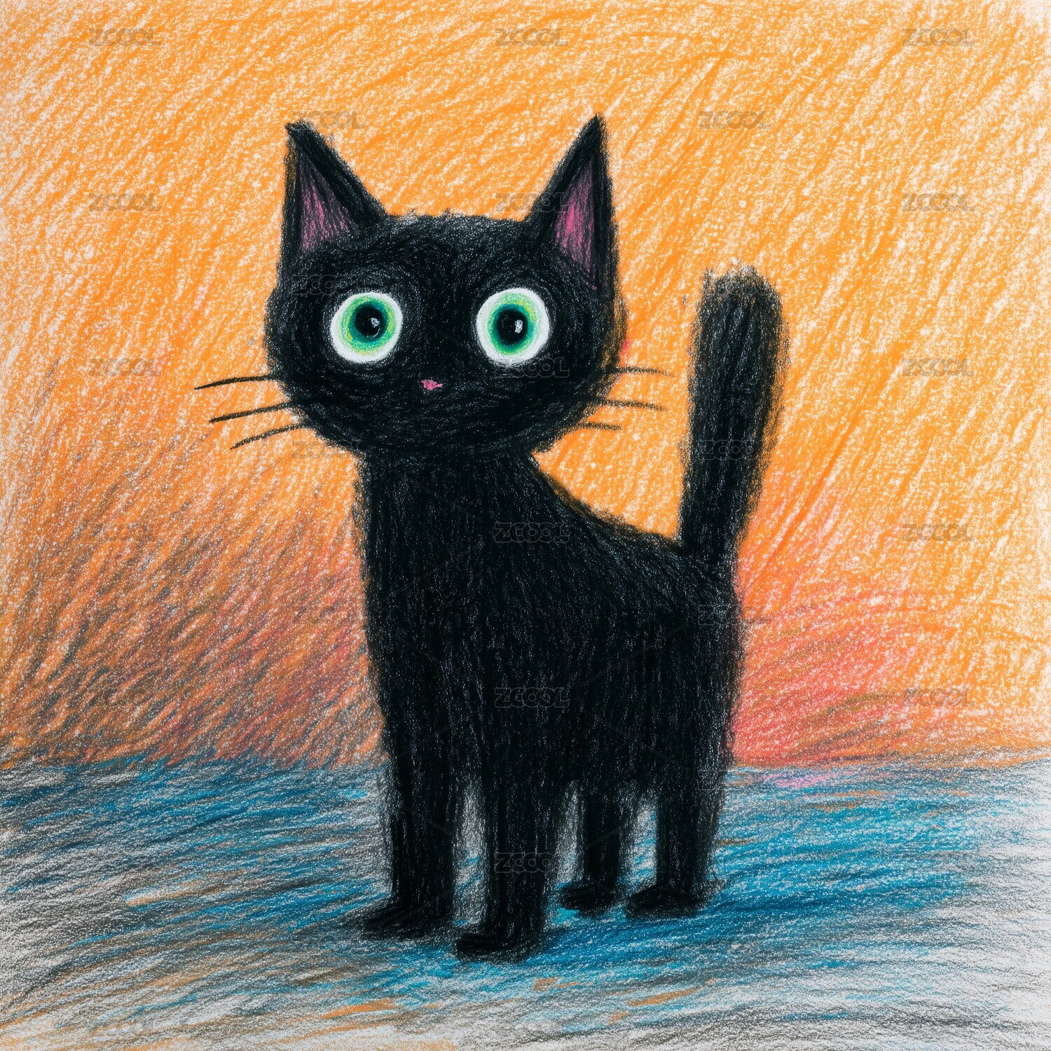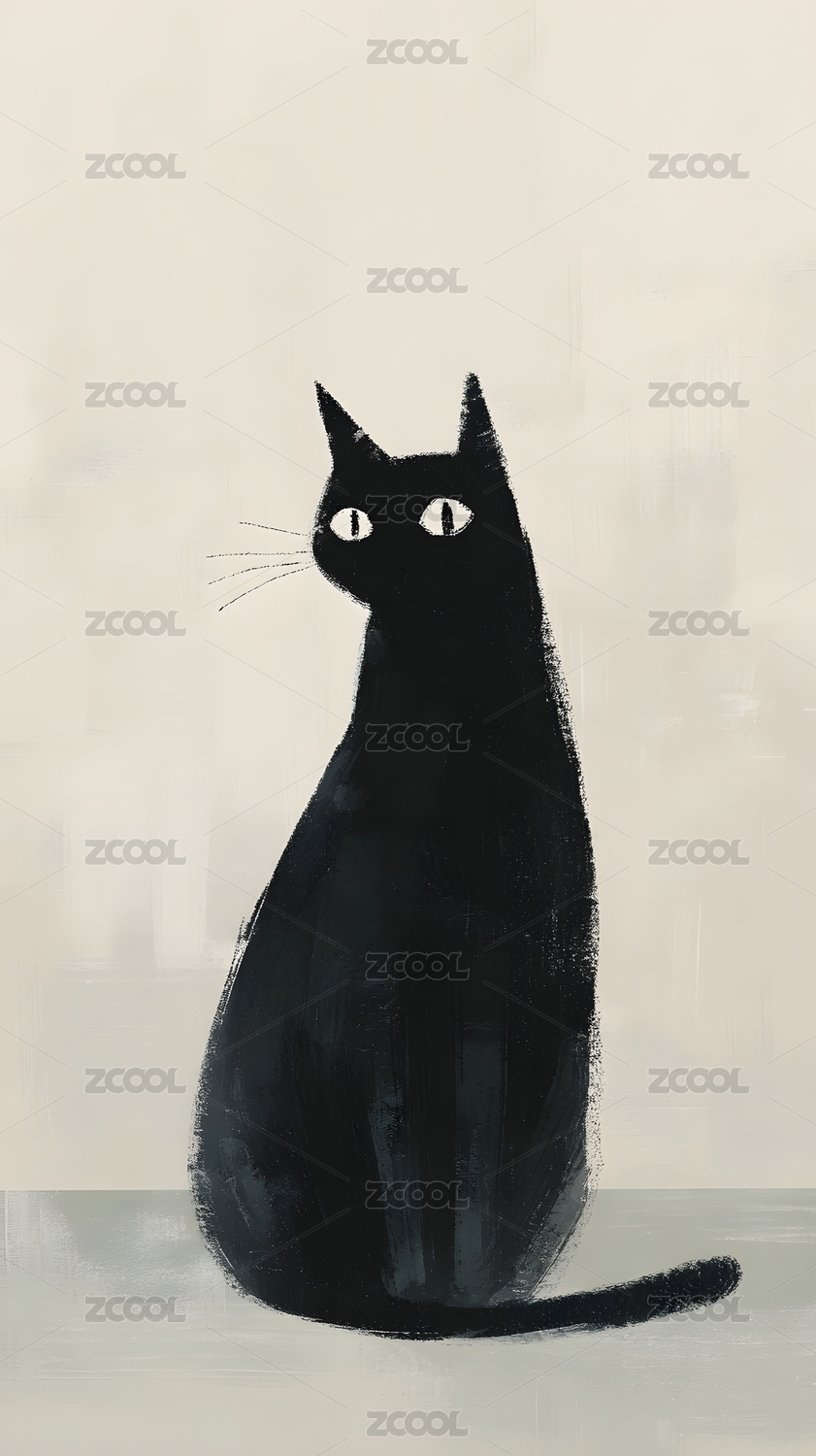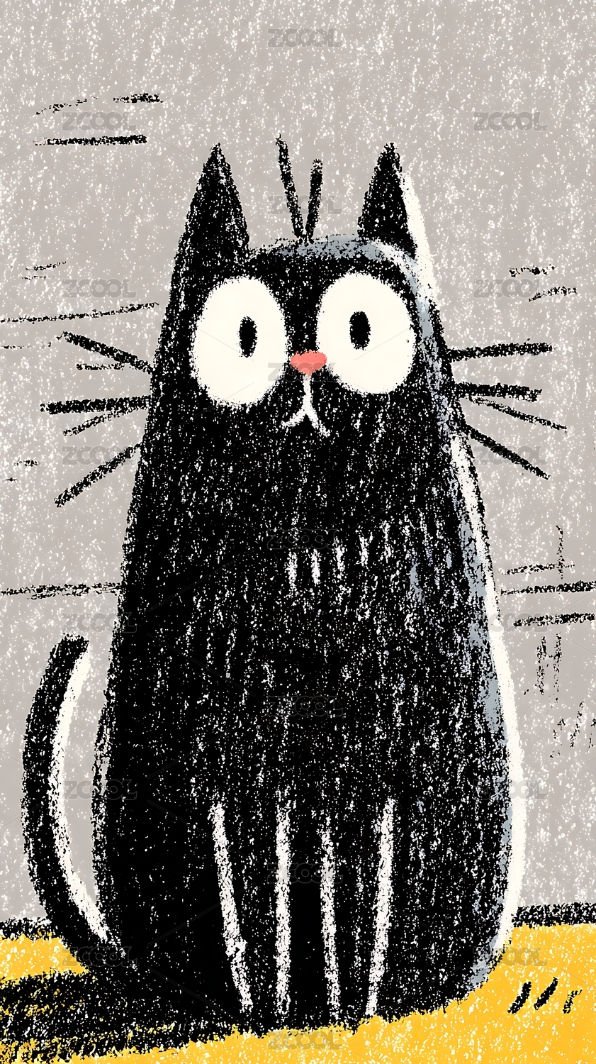 猫咪,插画,可爱,动物,萌宠,黑白,艺术,卡通,猫