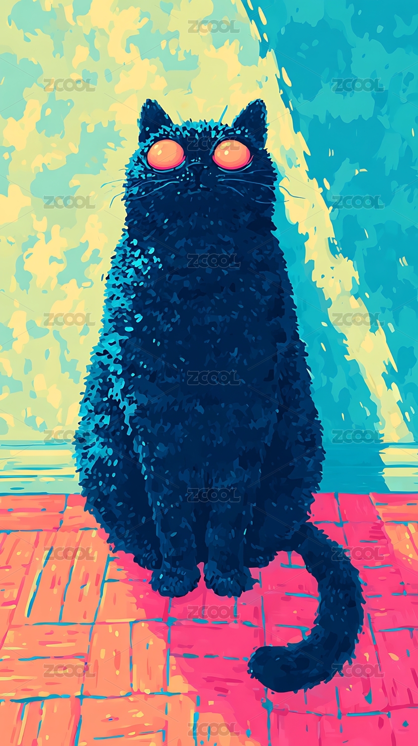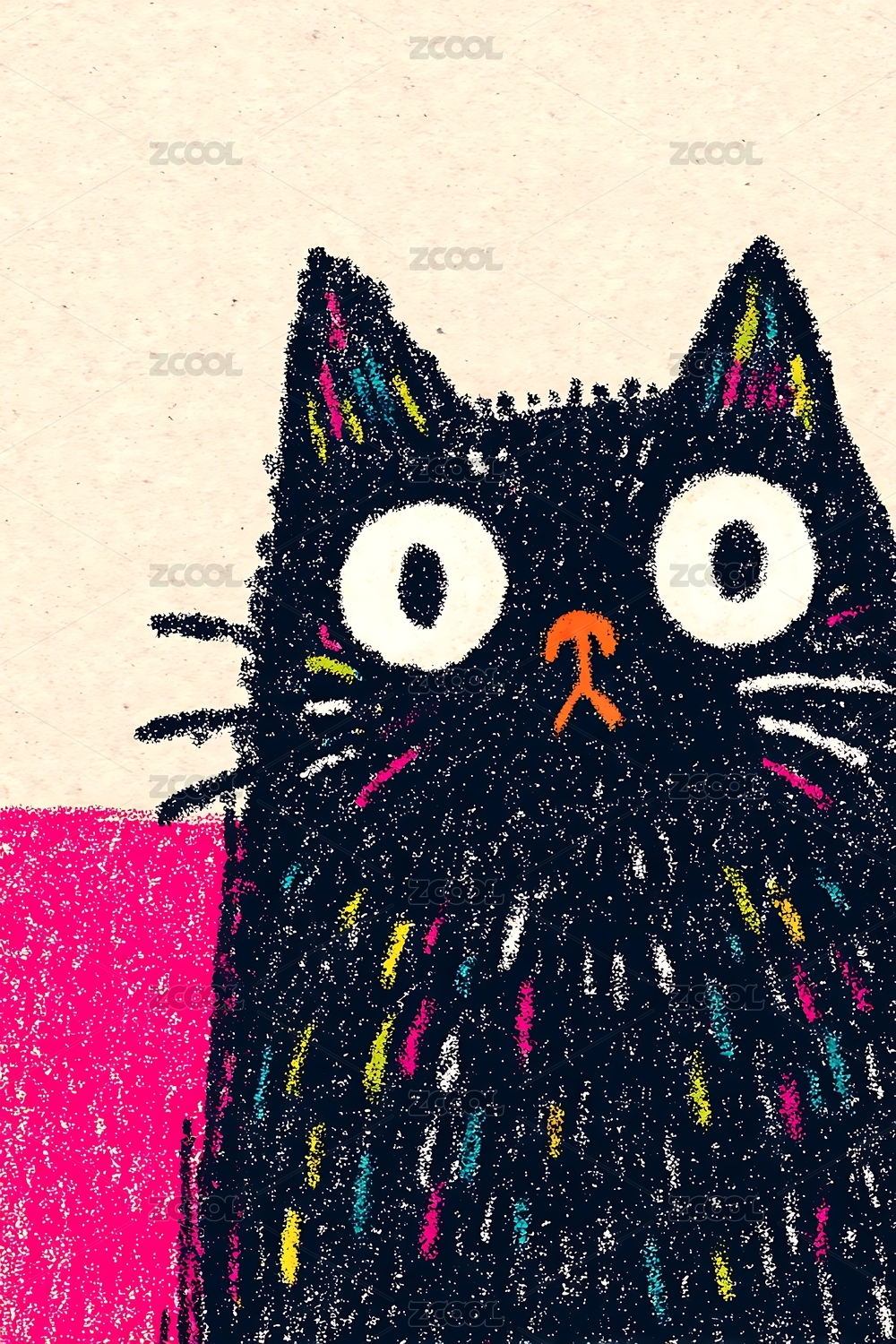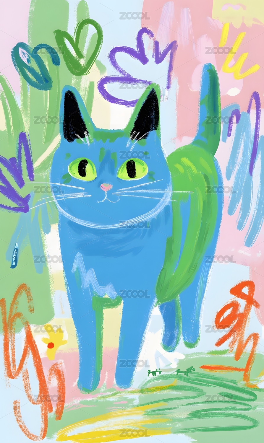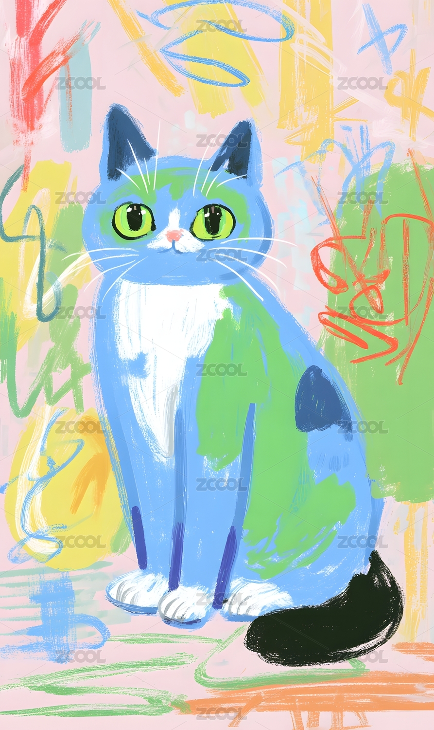 现代彩色猫猫油画插画背景海报抽象装饰画