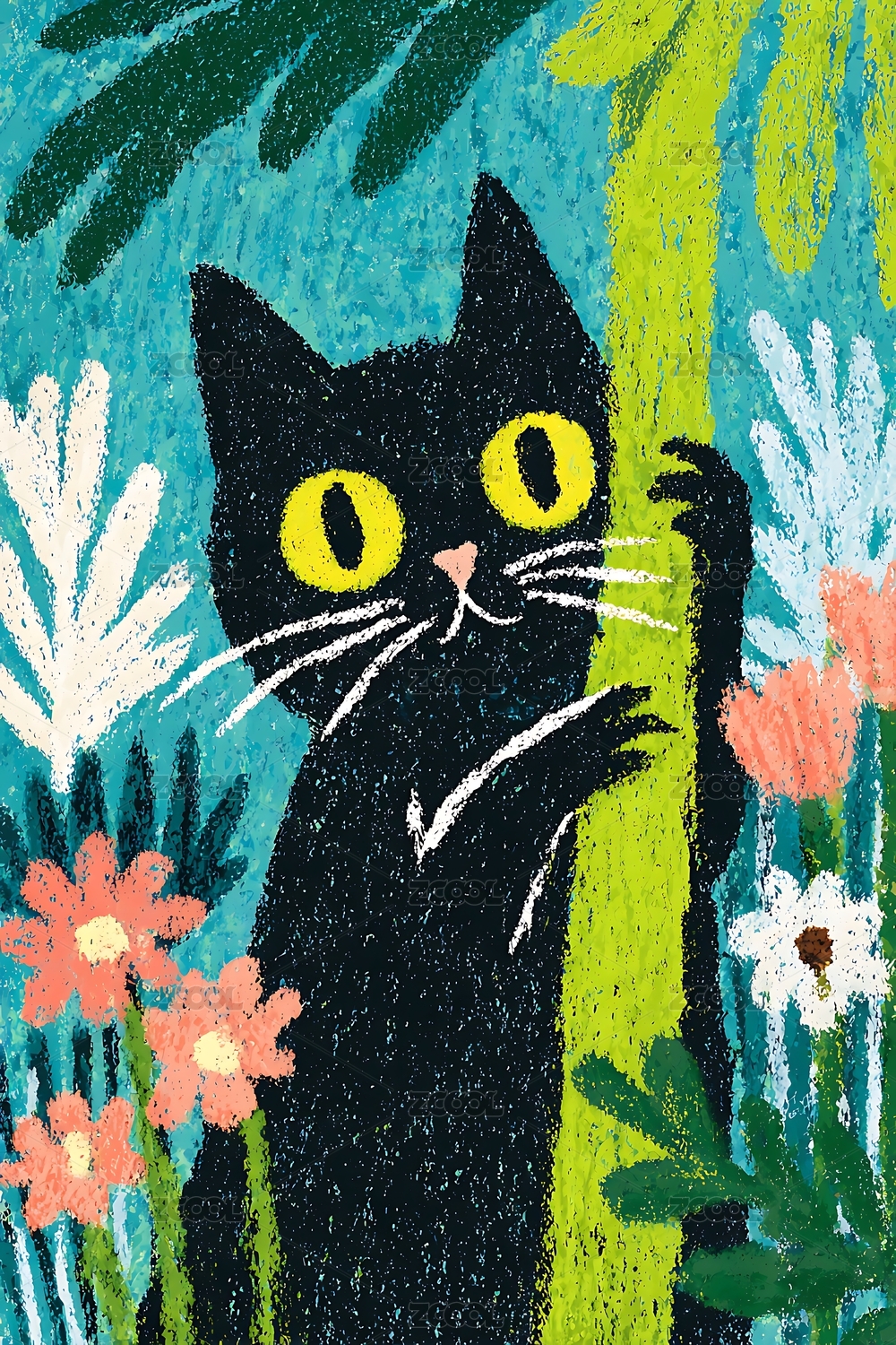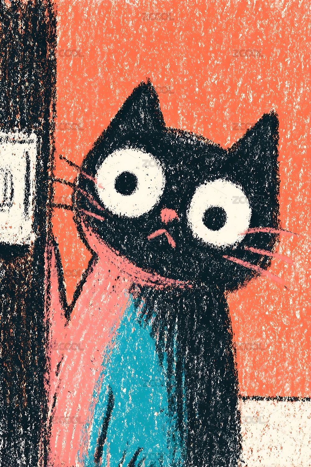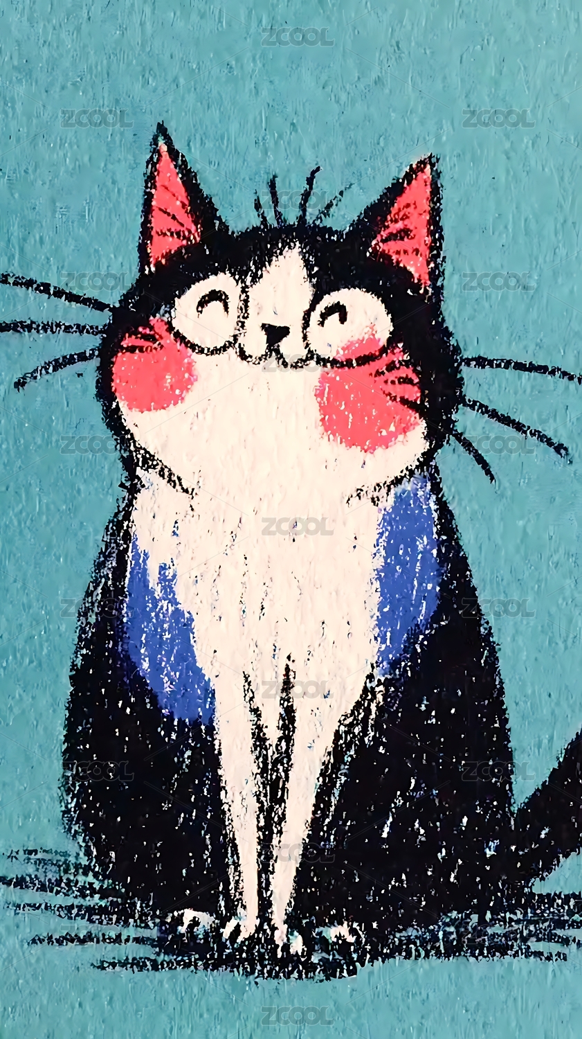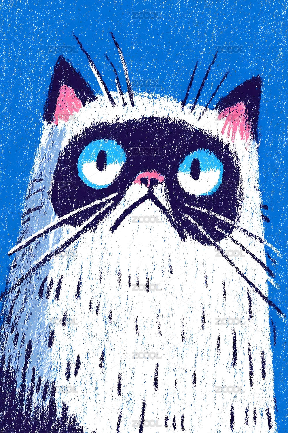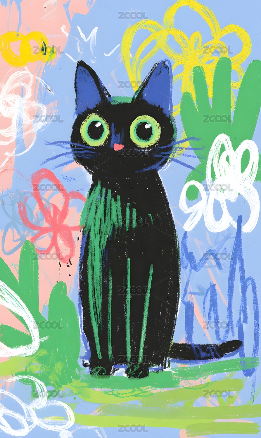 现代彩色猫猫油画插画背景海报抽象装饰画