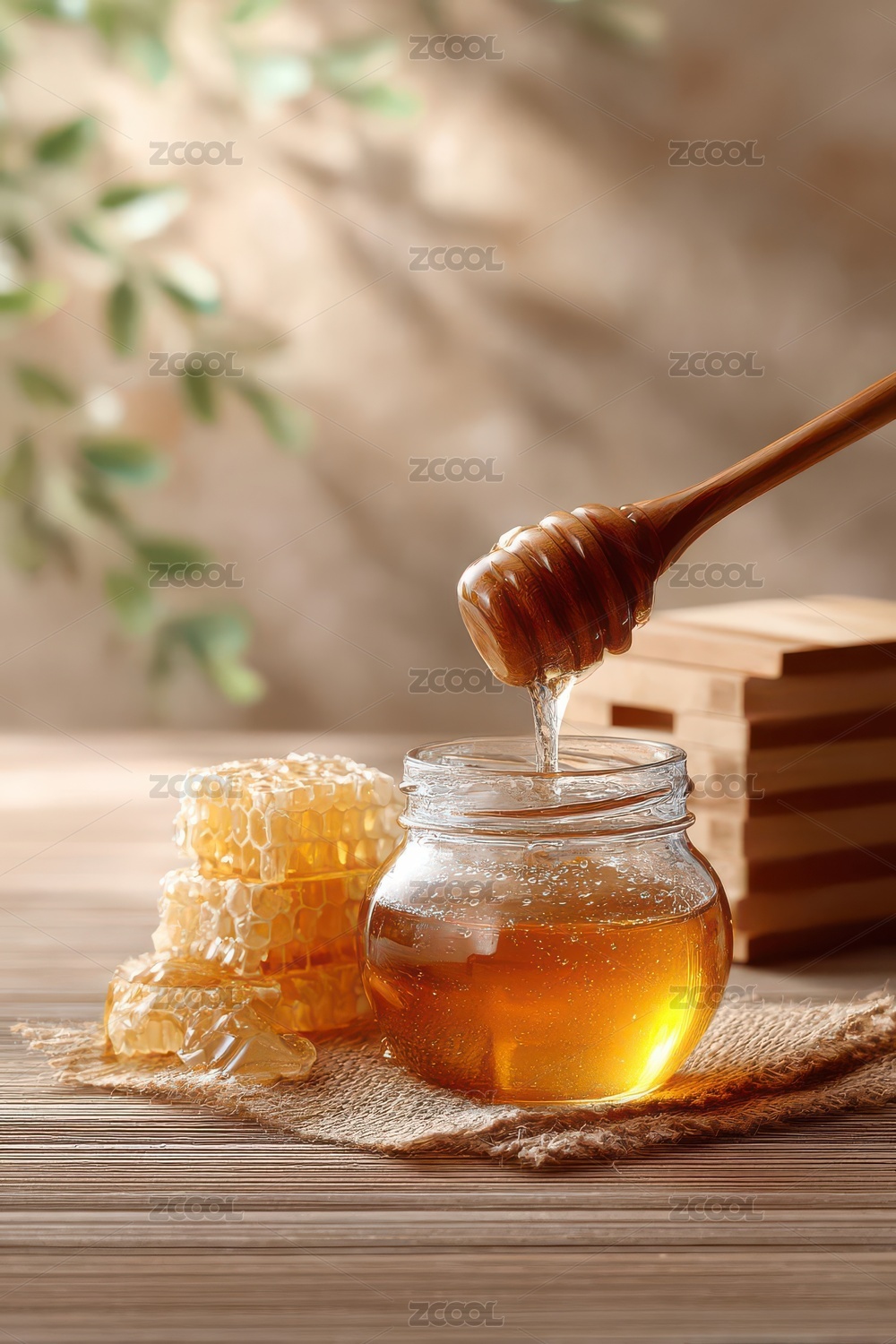 蜂蜜缓缓流入玻璃罐的温馨场景