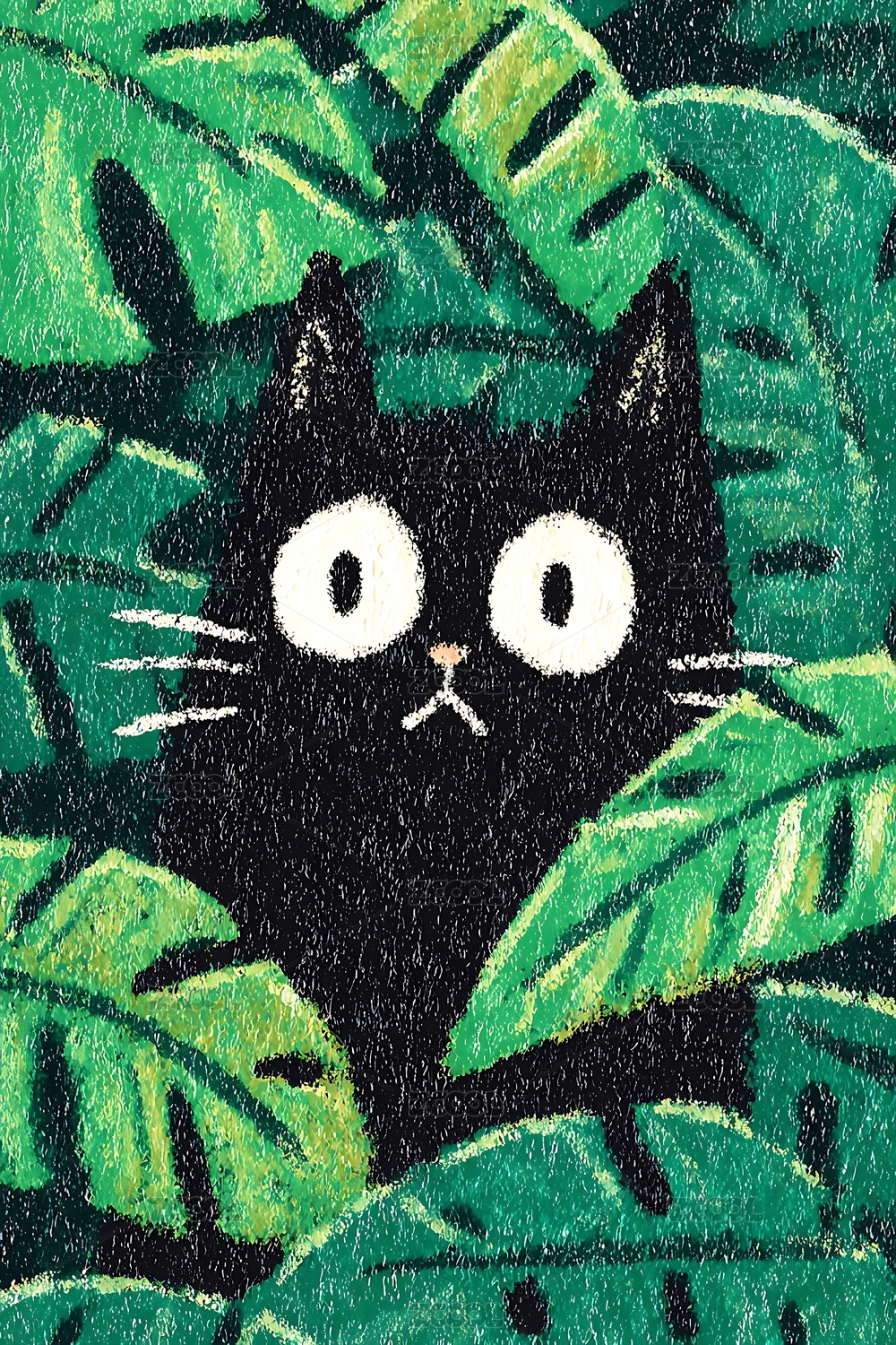 猫咪,插画,可爱,动物,萌宠,黑白,艺术,卡通,猫