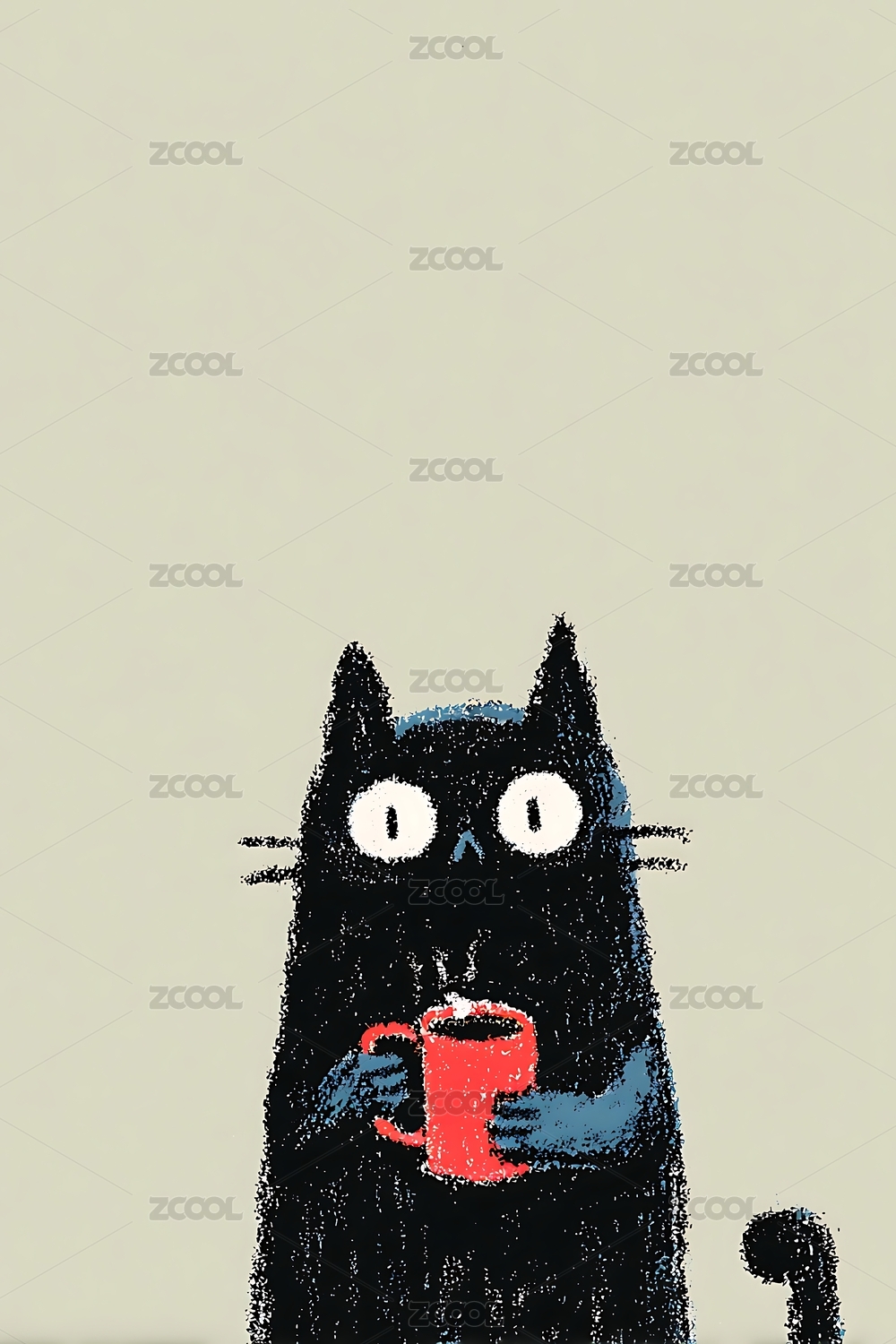 猫咪,插画,可爱,动物,萌宠,黑白,艺术,卡通,猫