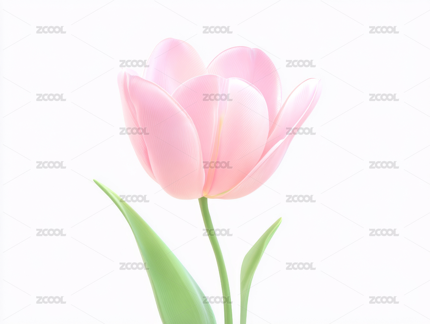 花瓶里有一朵粉红色的花上面有绿色的叶子高