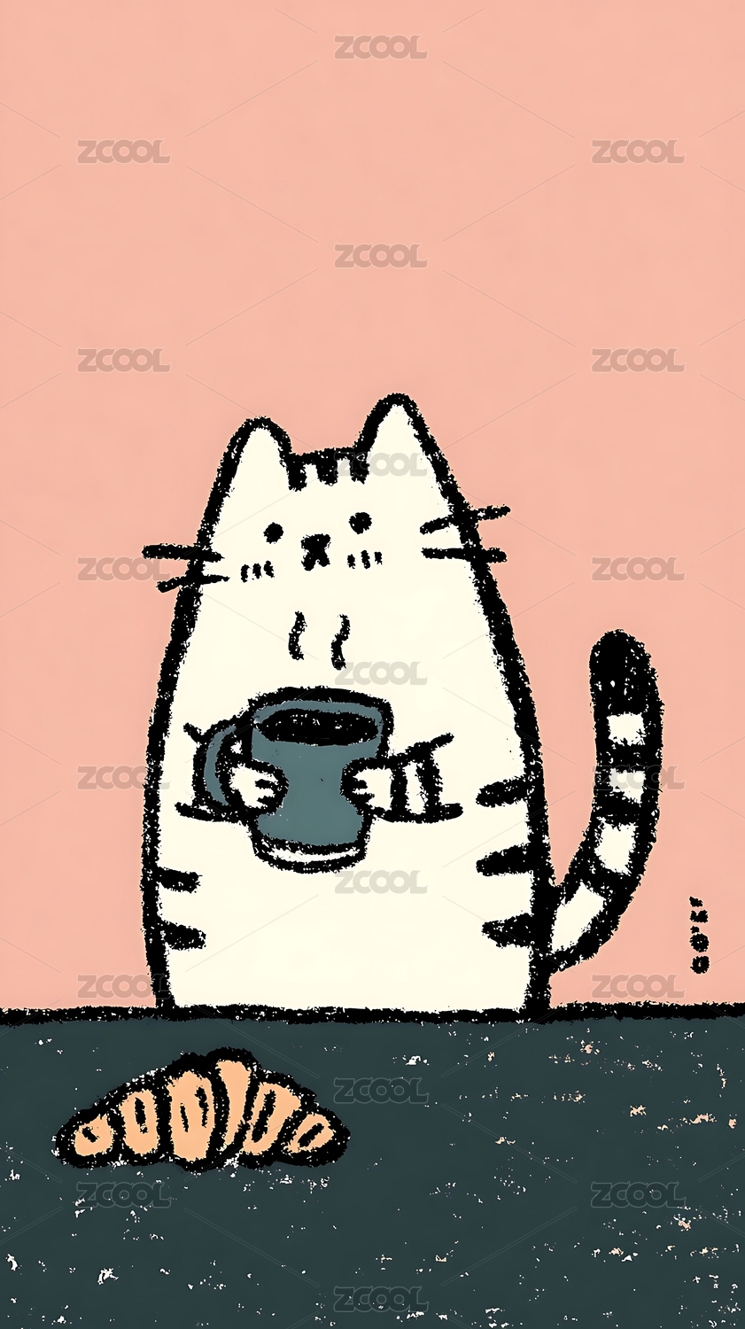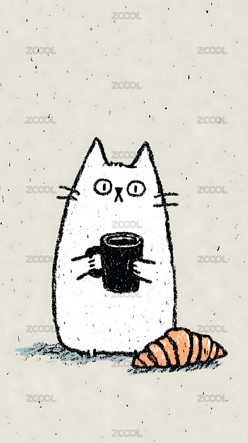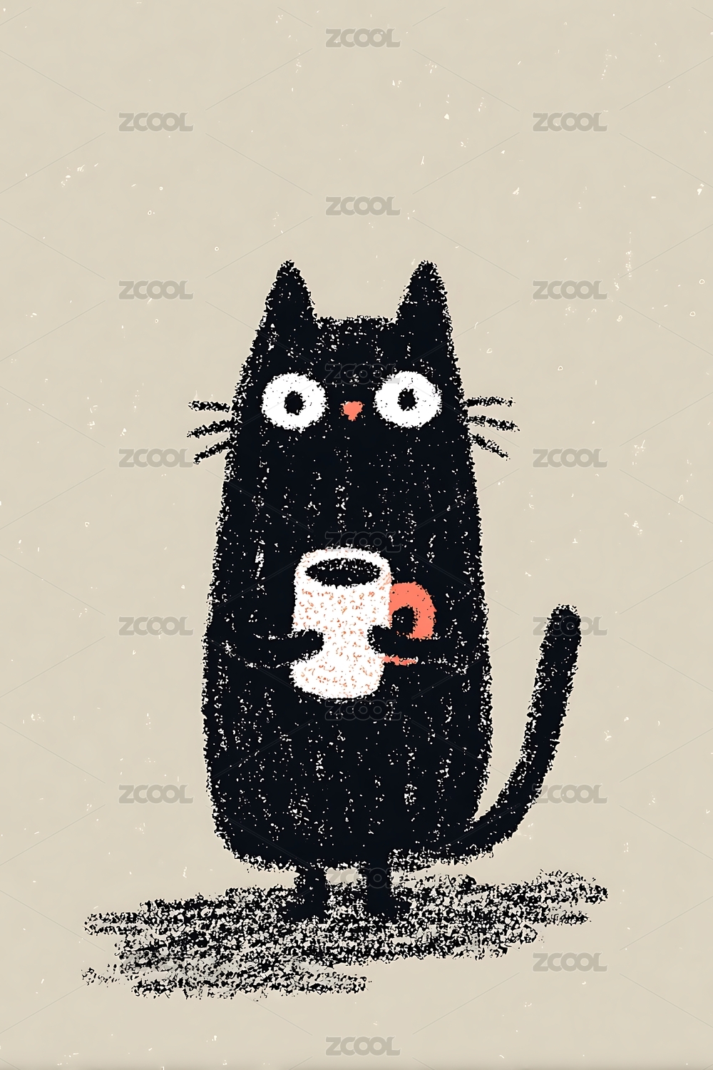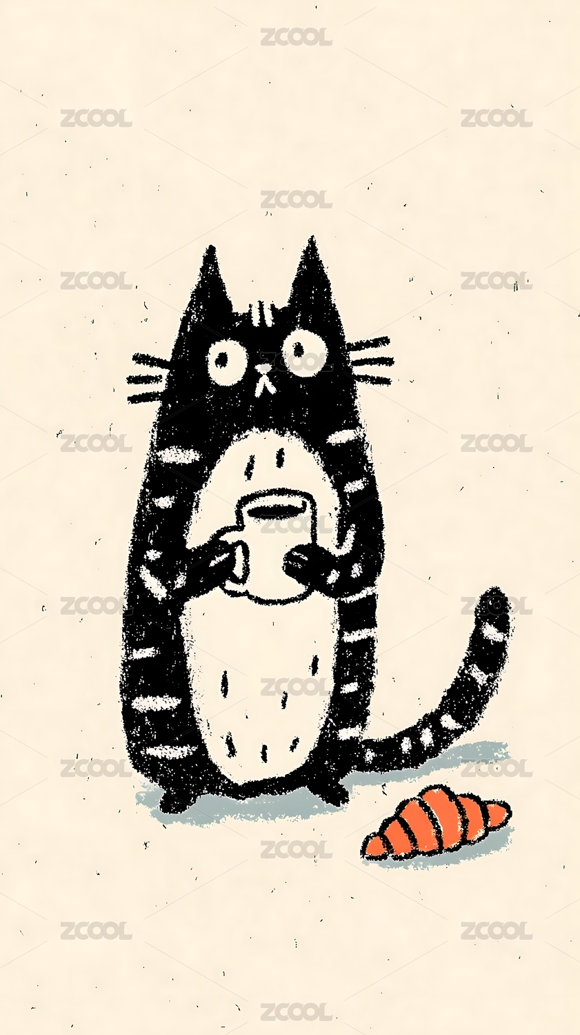 猫咪,插画,可爱,动物,萌宠,黑白,艺术,卡通,猫