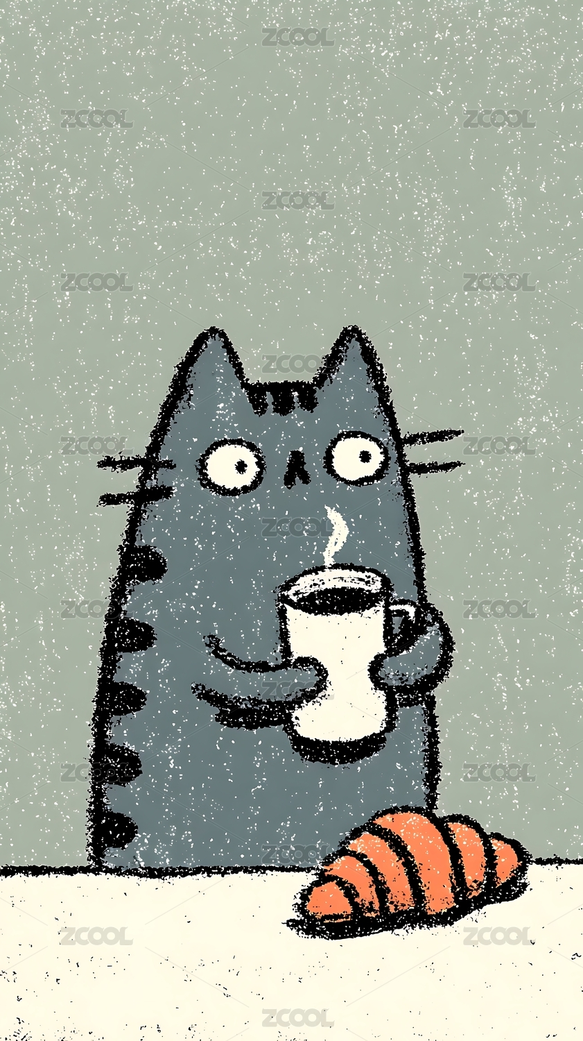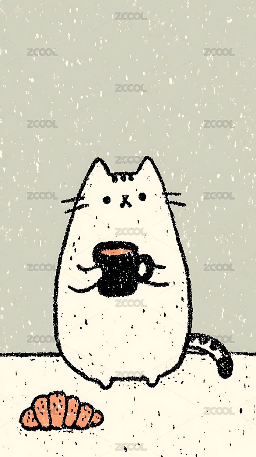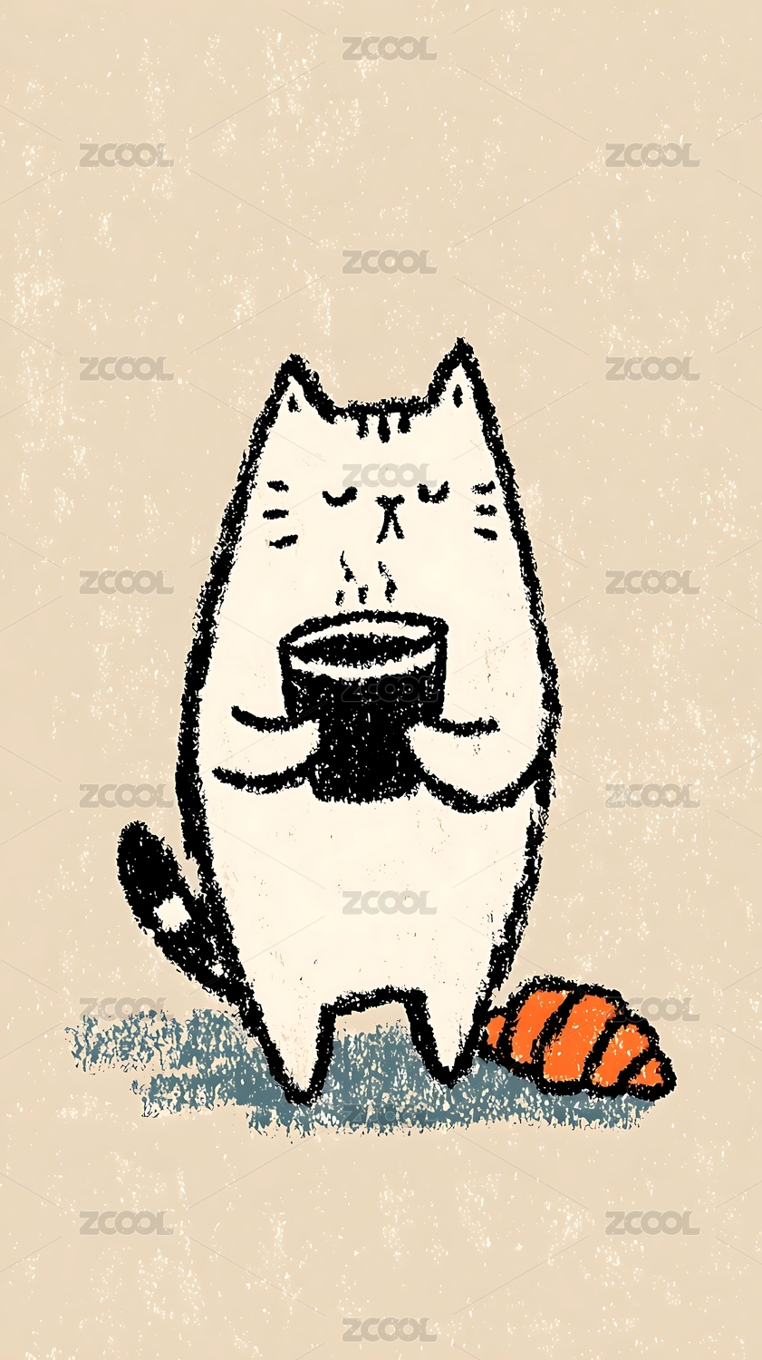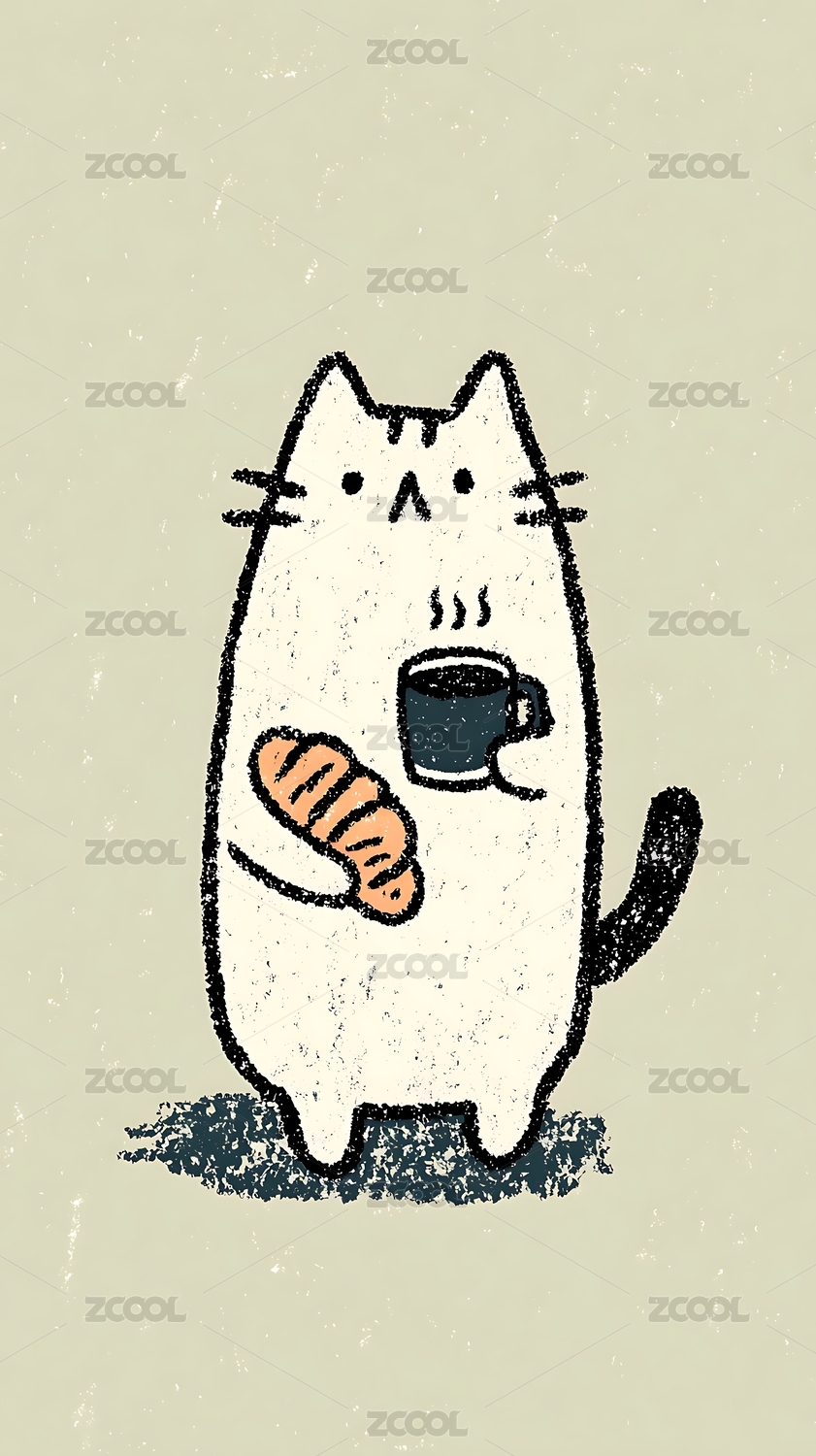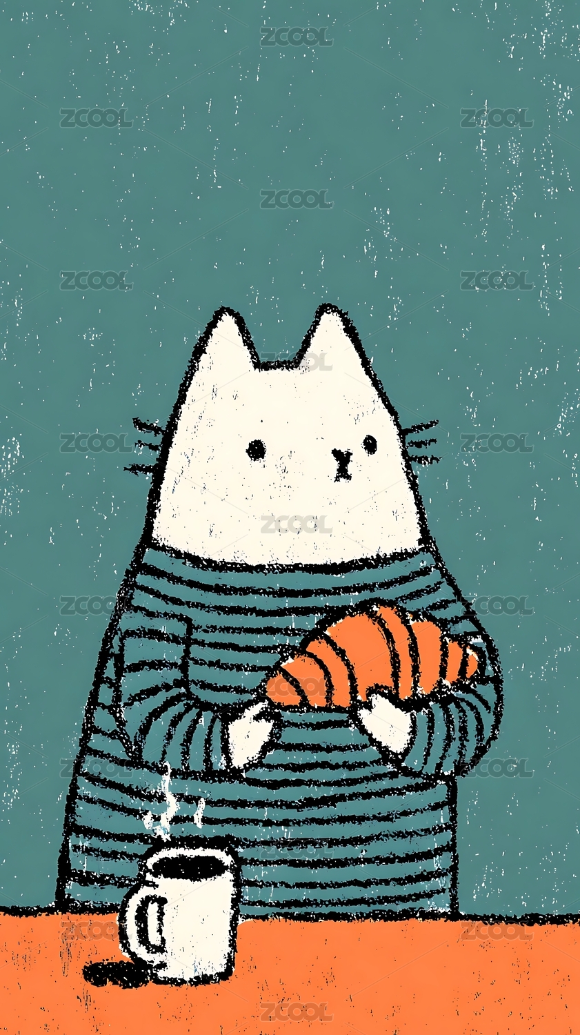 猫咪,插画,可爱,动物,萌宠,黑白,艺术,卡通,猫