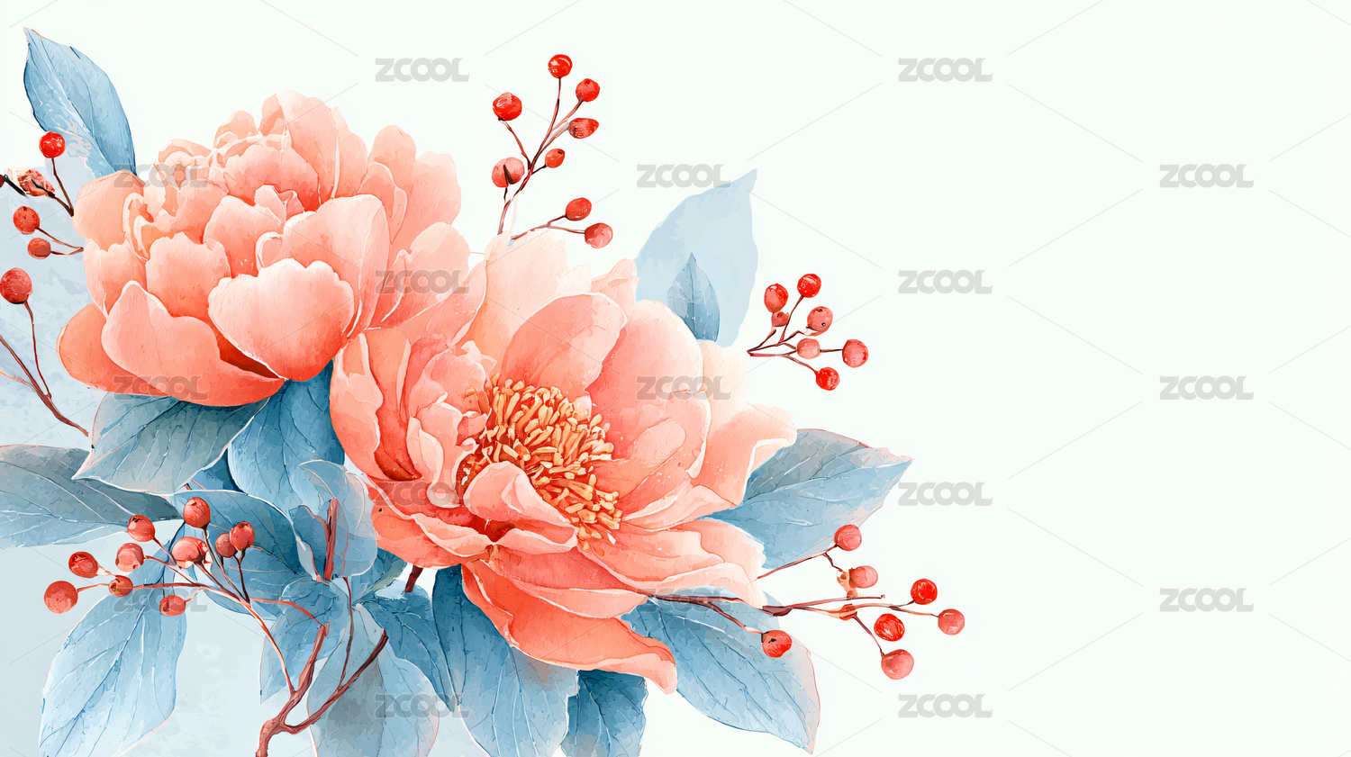 水彩牡丹花卉图