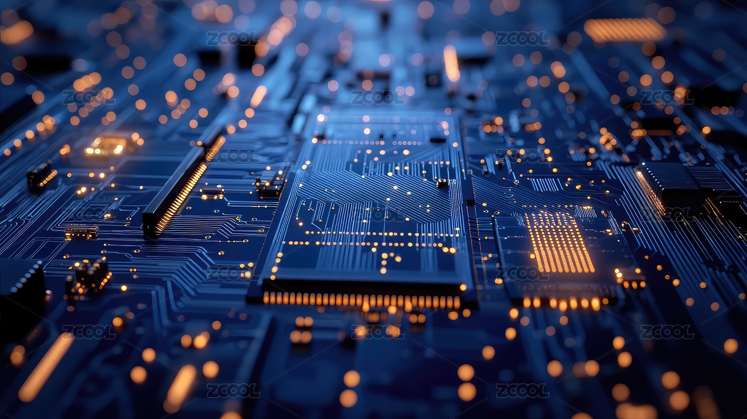 蓝色电路板高清特写科技感十足