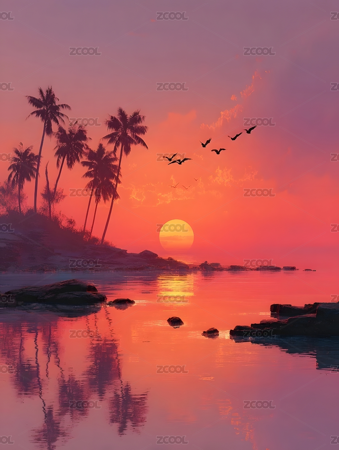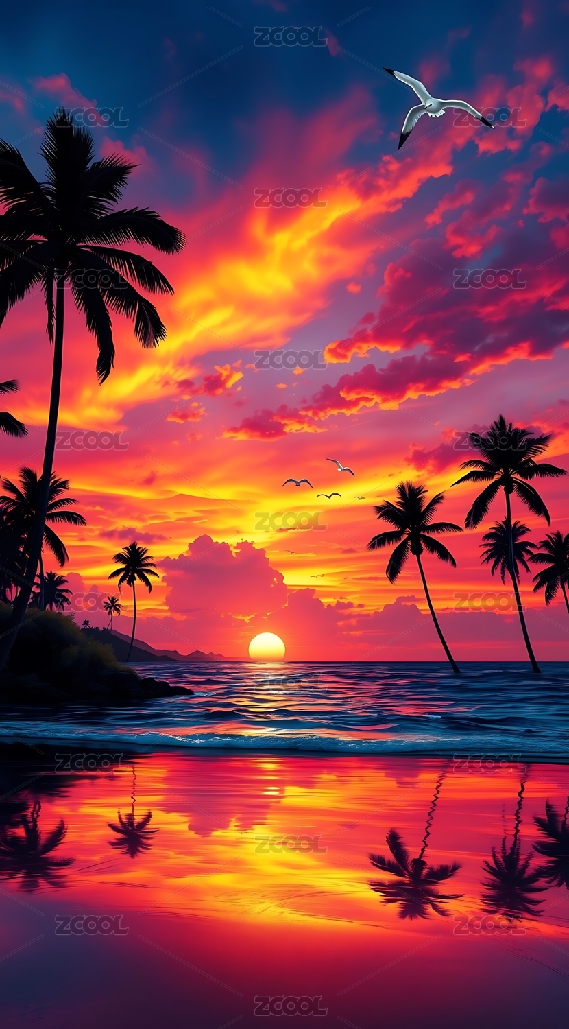 红色,粉色,自然,云,天空,阳光,风景,紫色,棕榈叶,日落