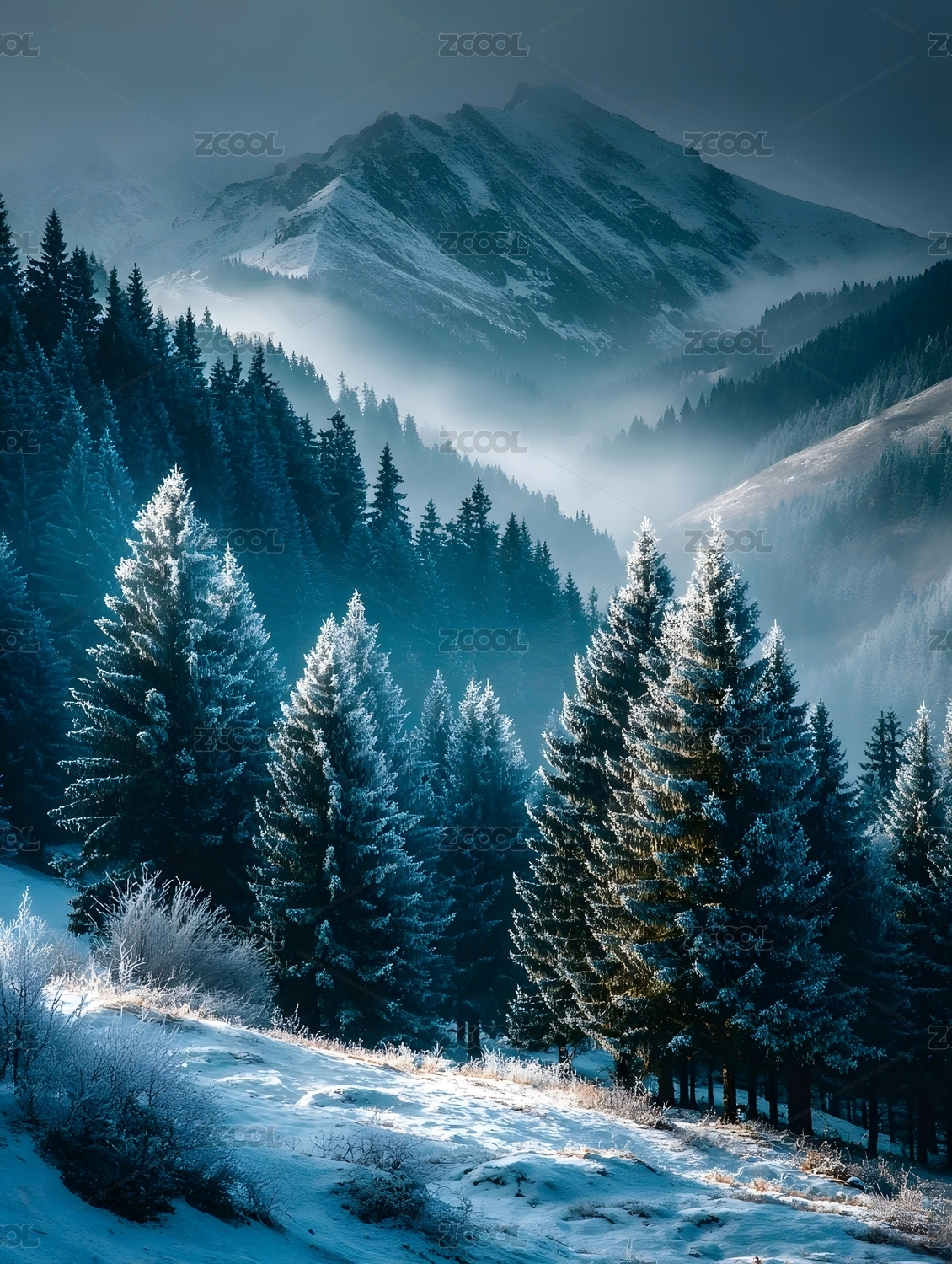 自然,雪山,山脉,树木,植被,松树,高山,雪线,森林,岩石