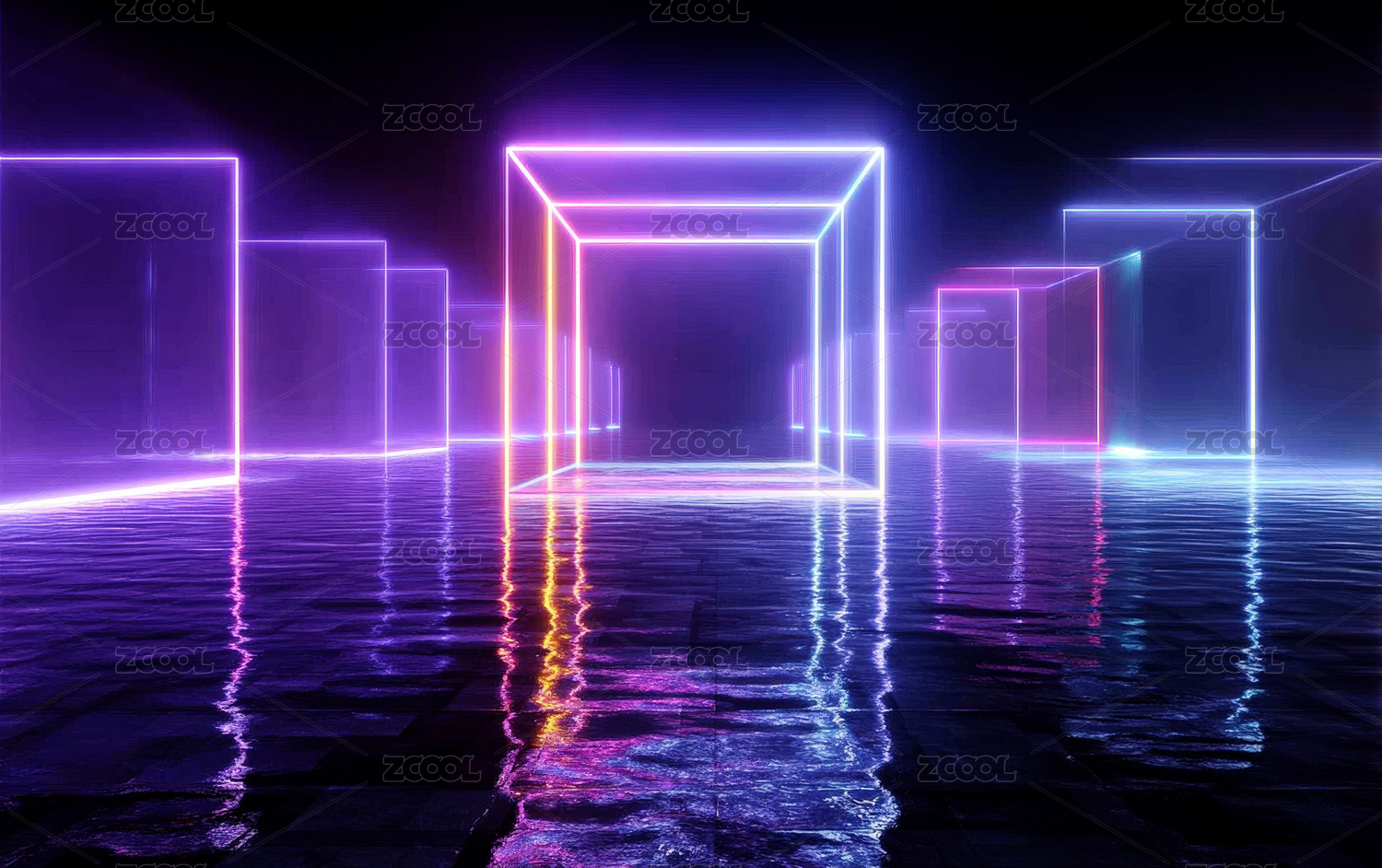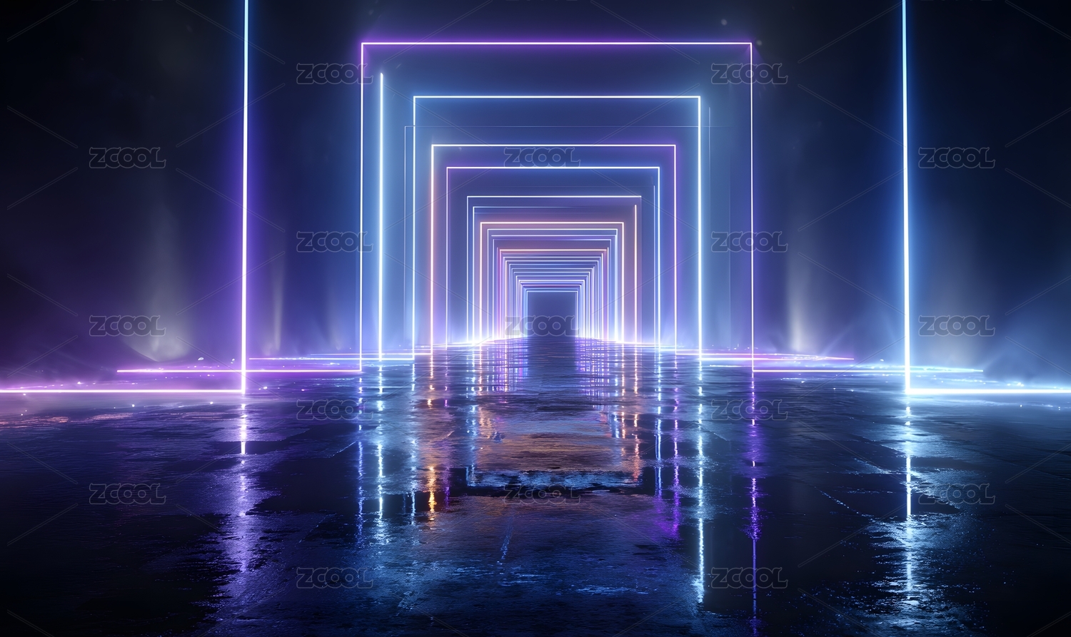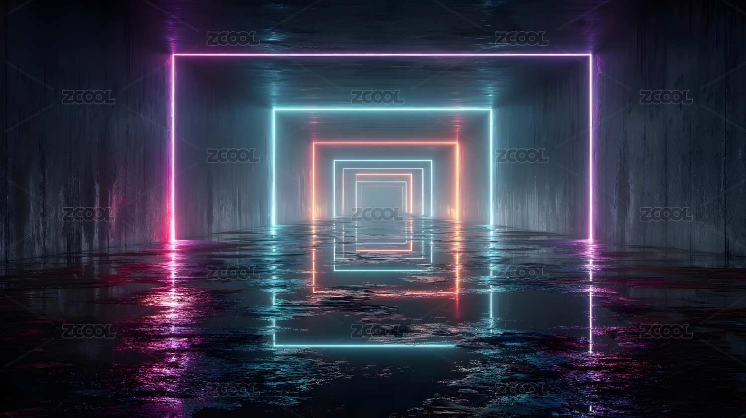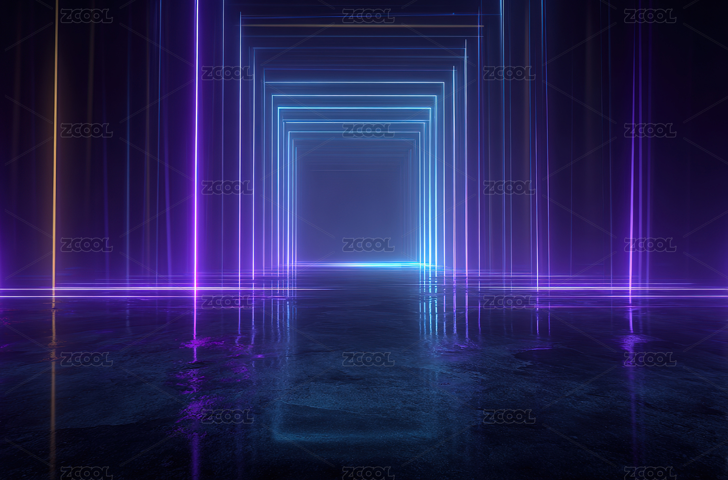 工业,地面,霓虹,灯光,蓝色,反射,空间,设计,艺术,建筑