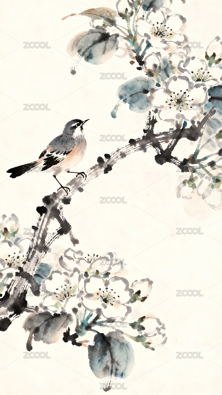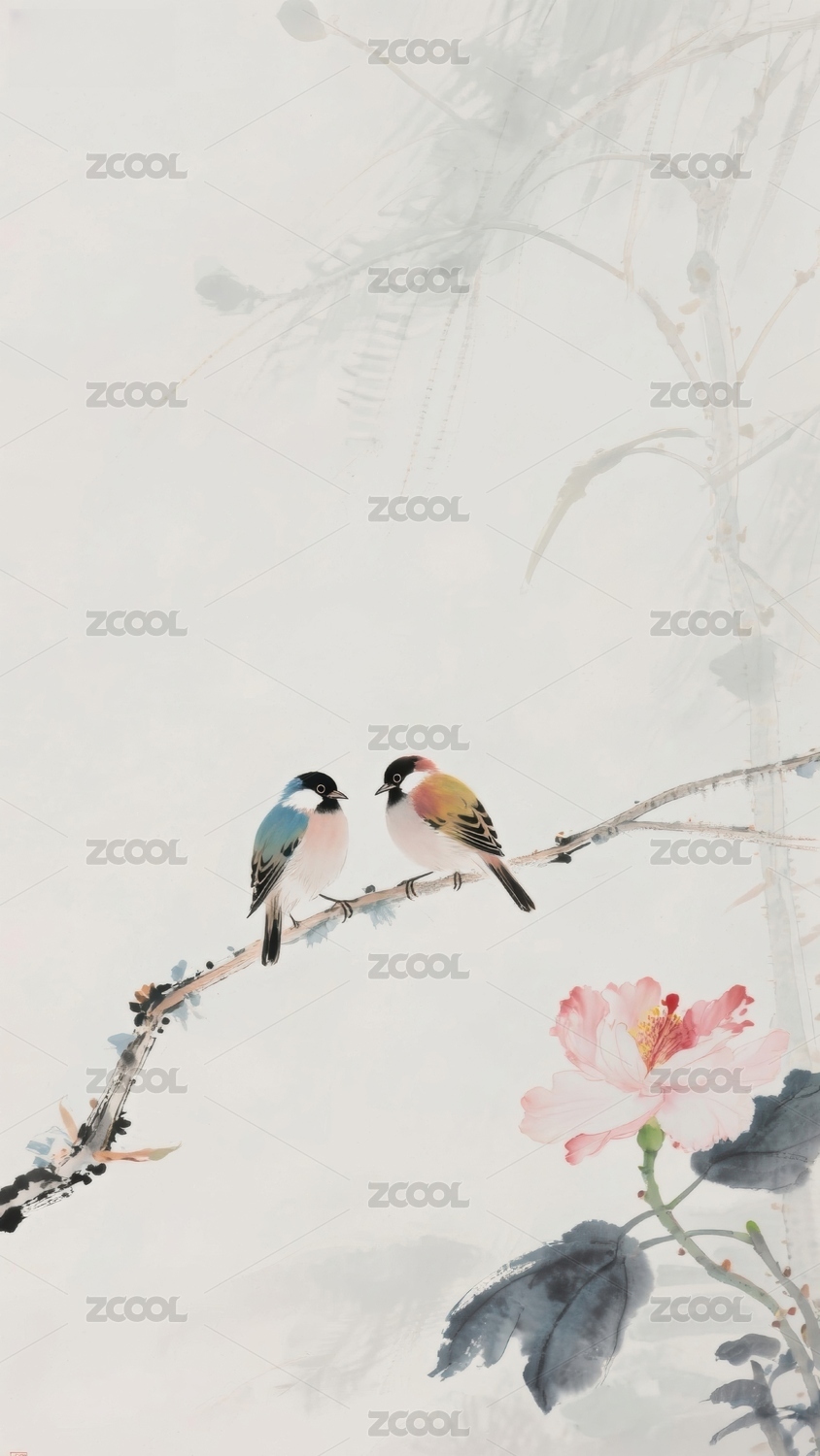 中国风淡彩水墨国画花鸟自然