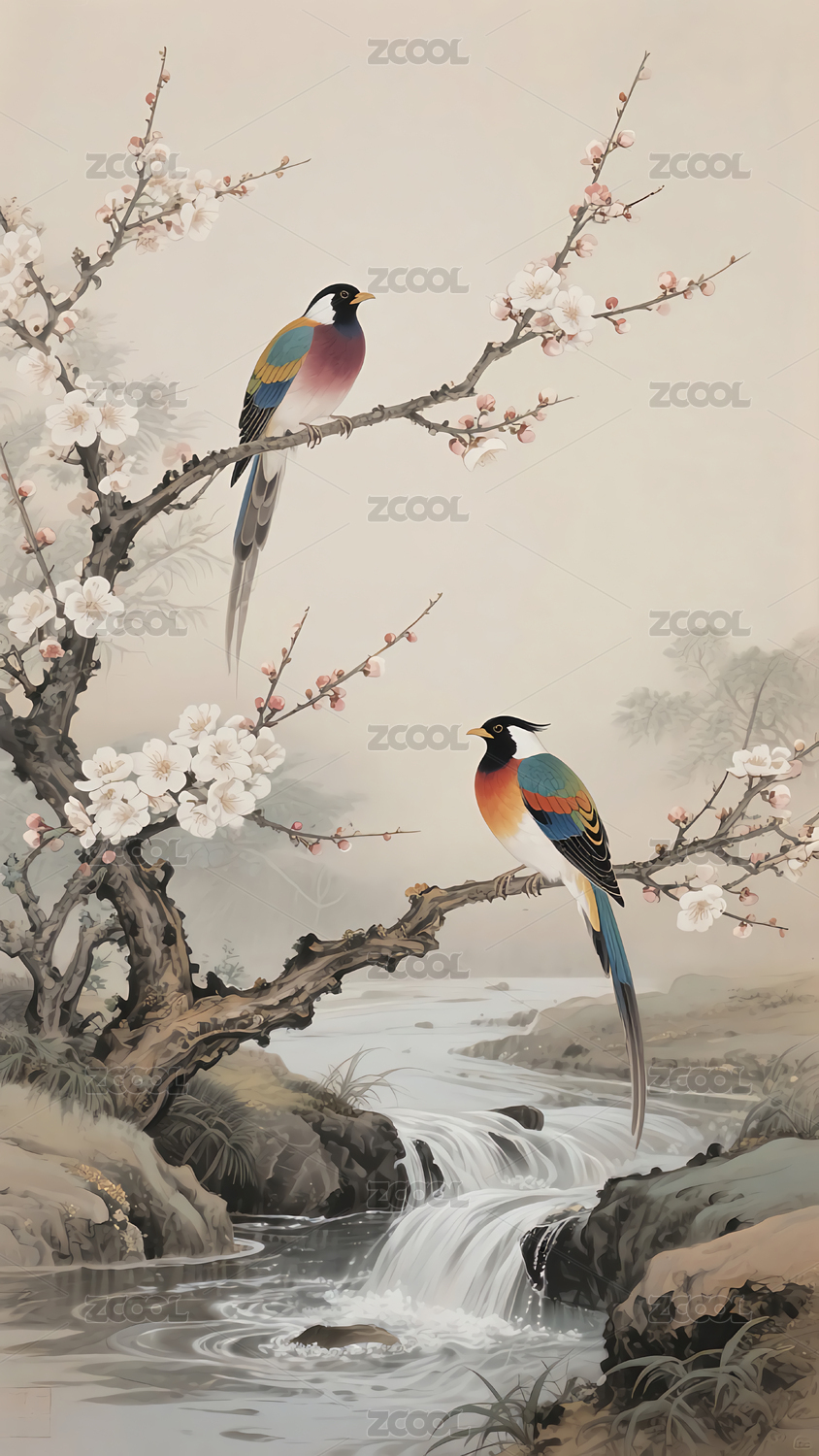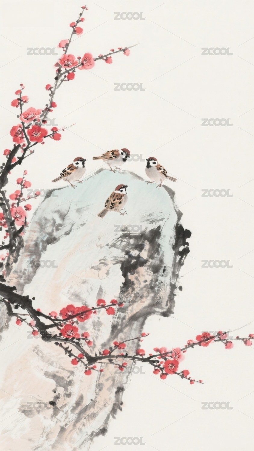 梅花枝上鸟栖石