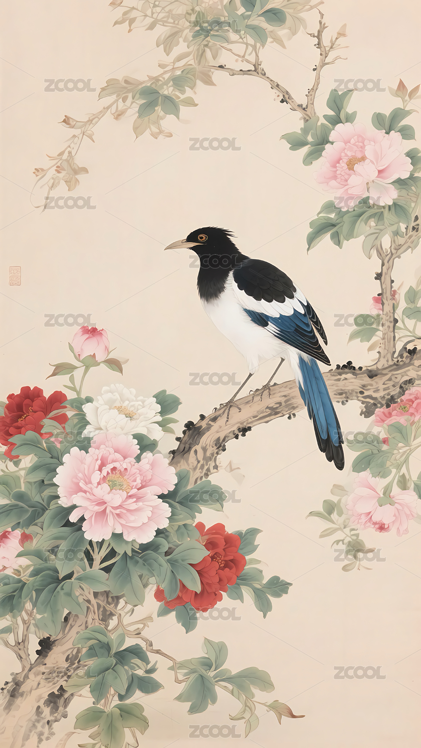 水墨画鸟语花香