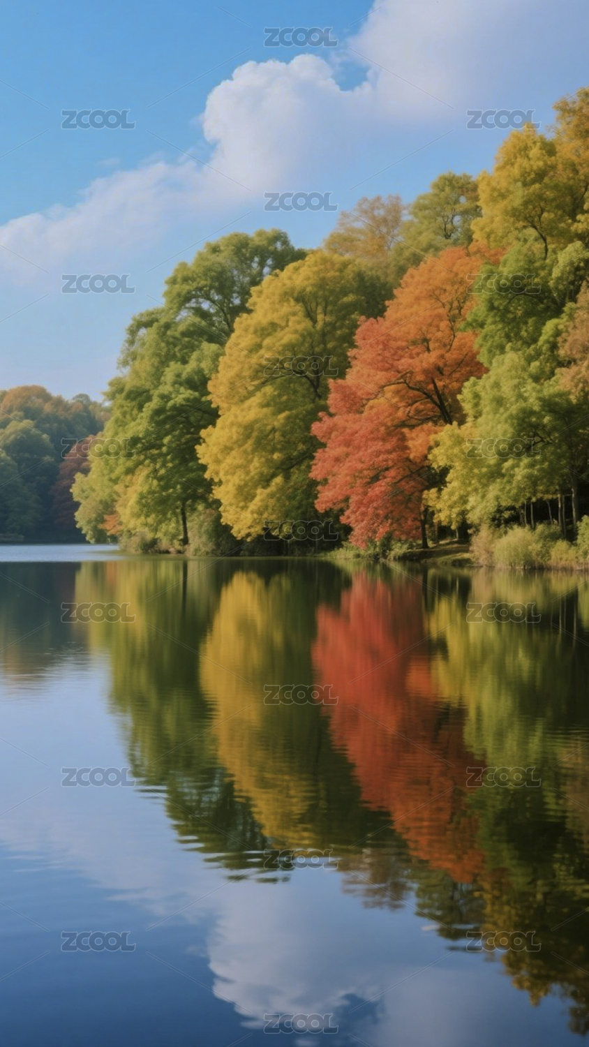 秋季,湖泊,倒影,树木,色彩,宁静,自然风光,水面,秋叶,天空