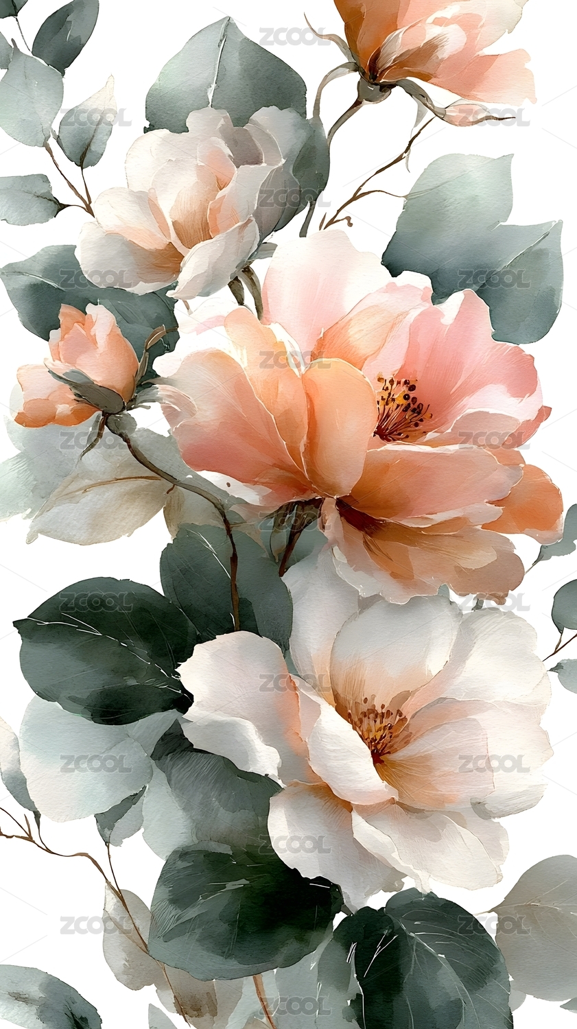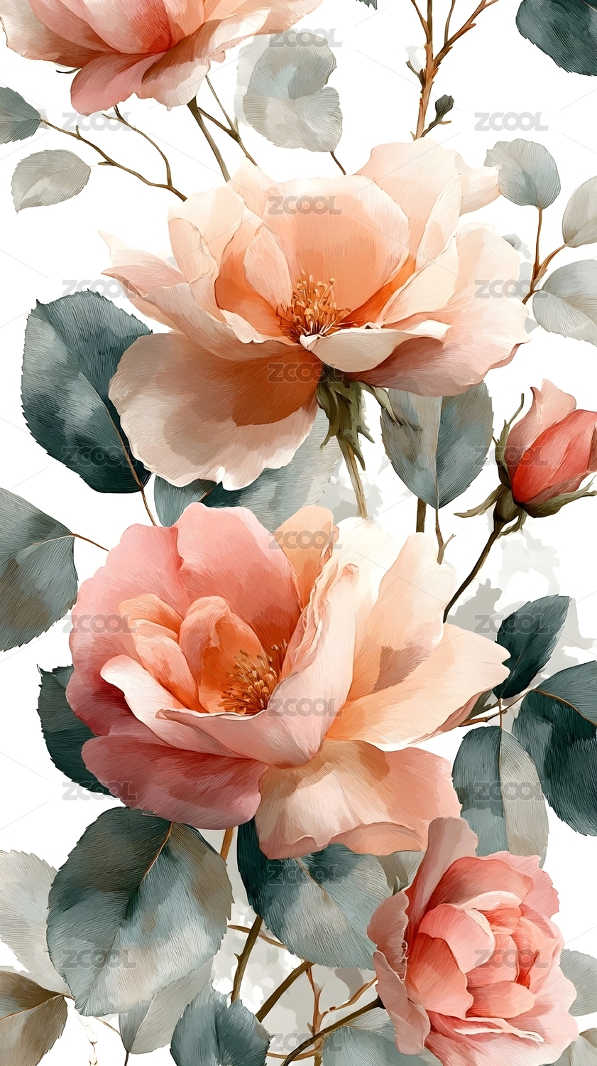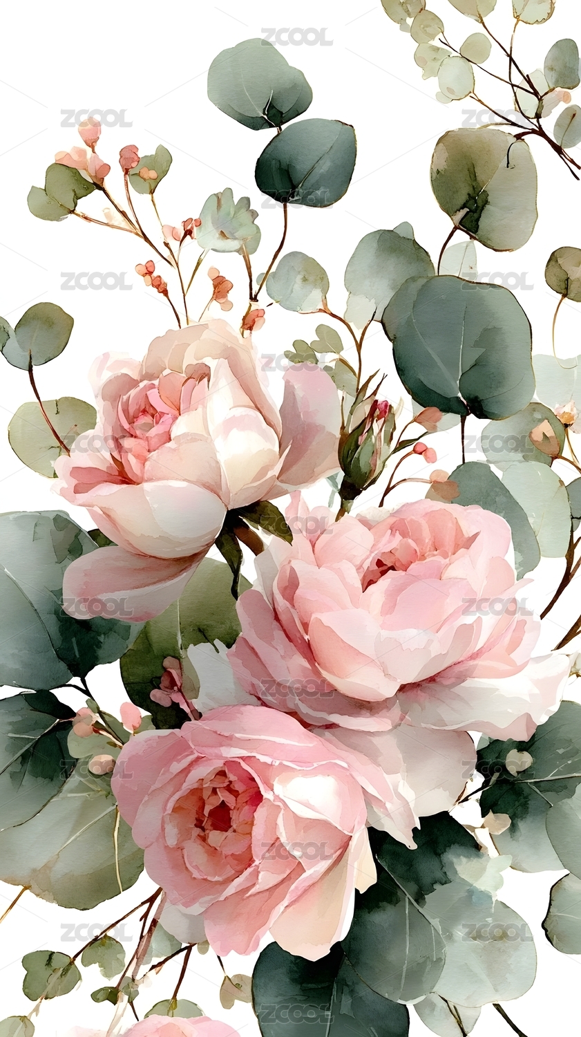 植物,花朵,叶子,玫瑰,水彩,花瓣,枝条