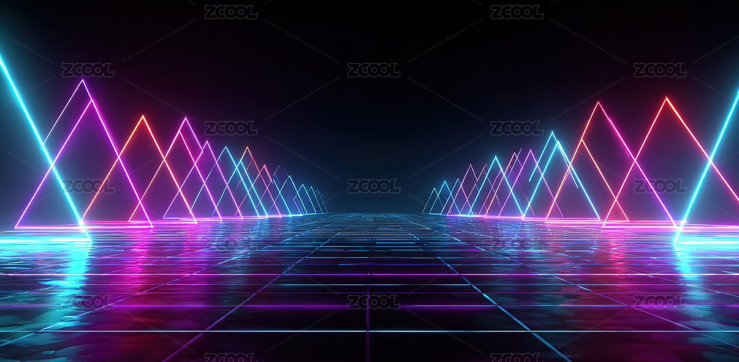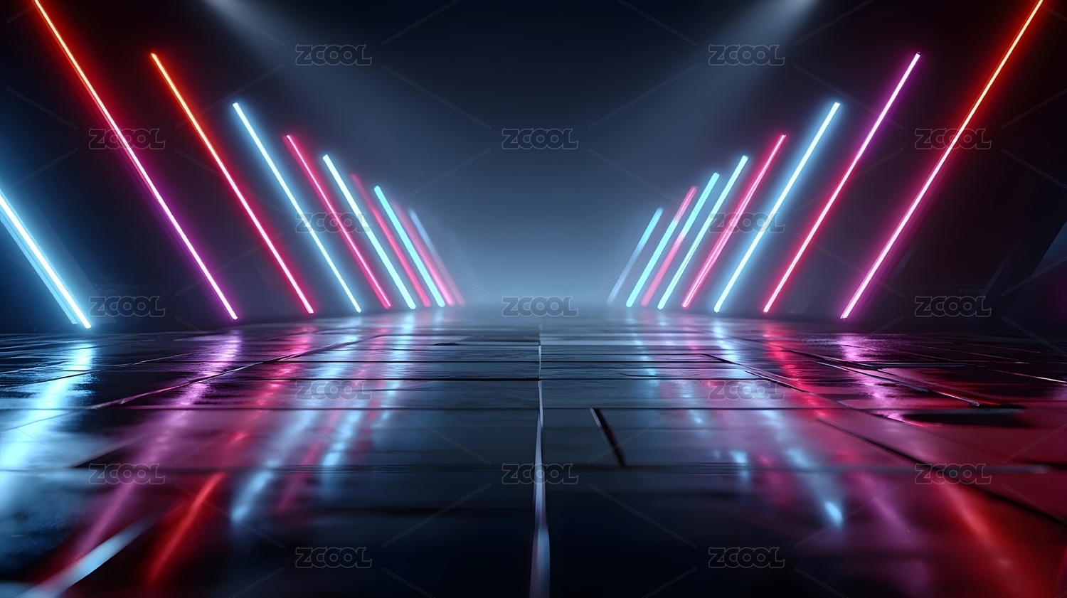 通道,地面,霓虹,灯光,蓝色,红色,反射,空间,现代,设计