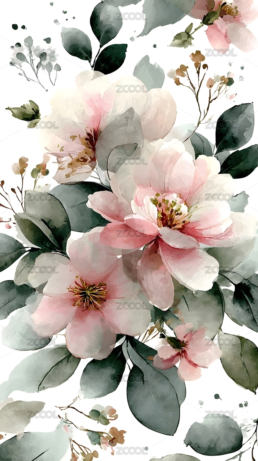水彩花卉优雅绽放