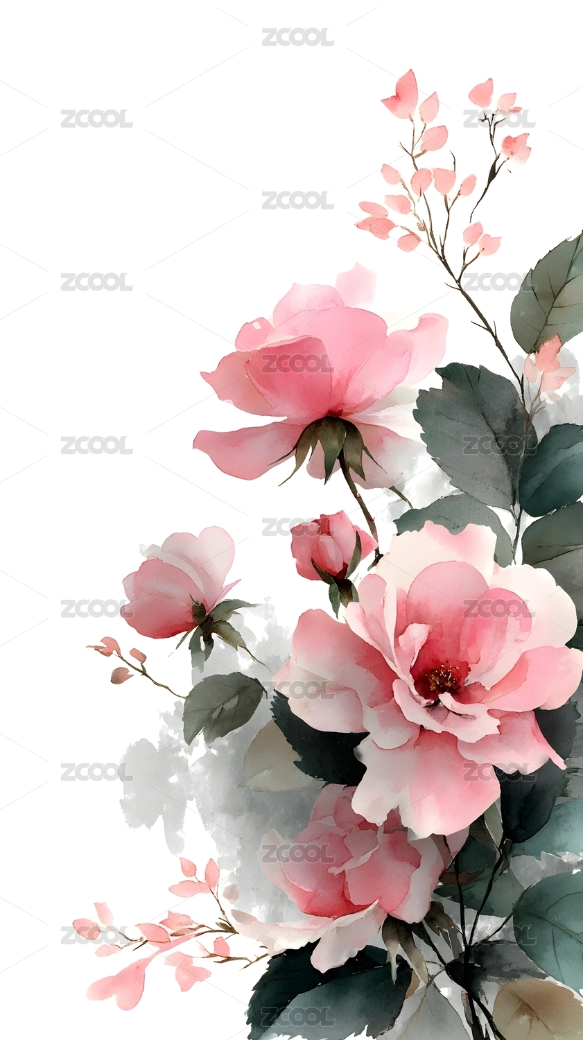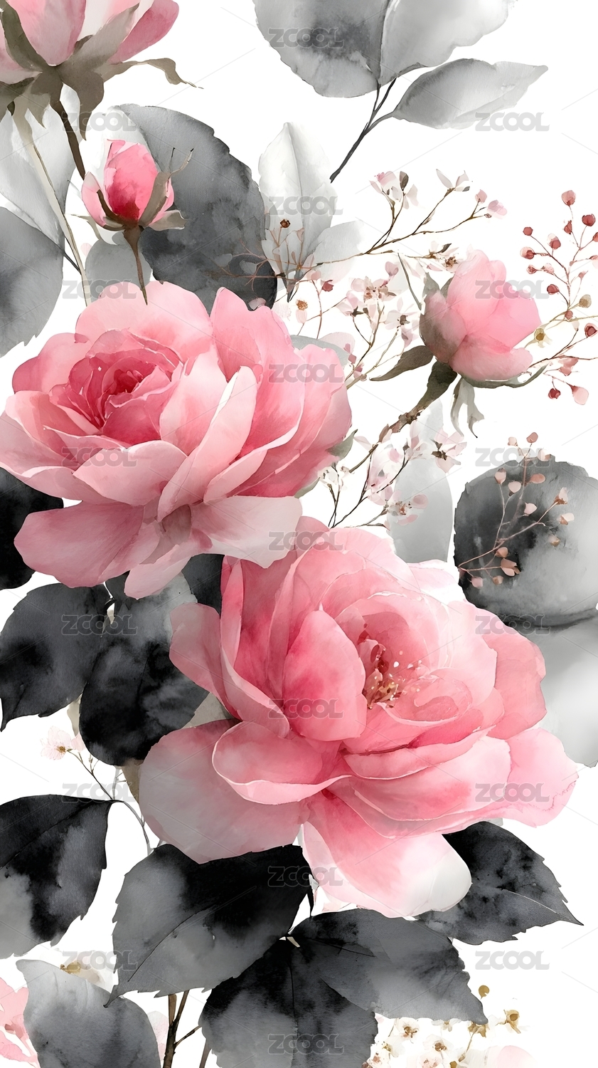水墨粉红玫瑰