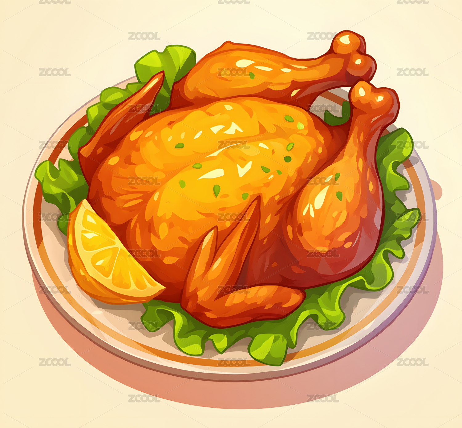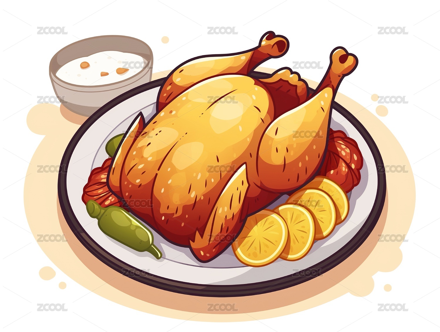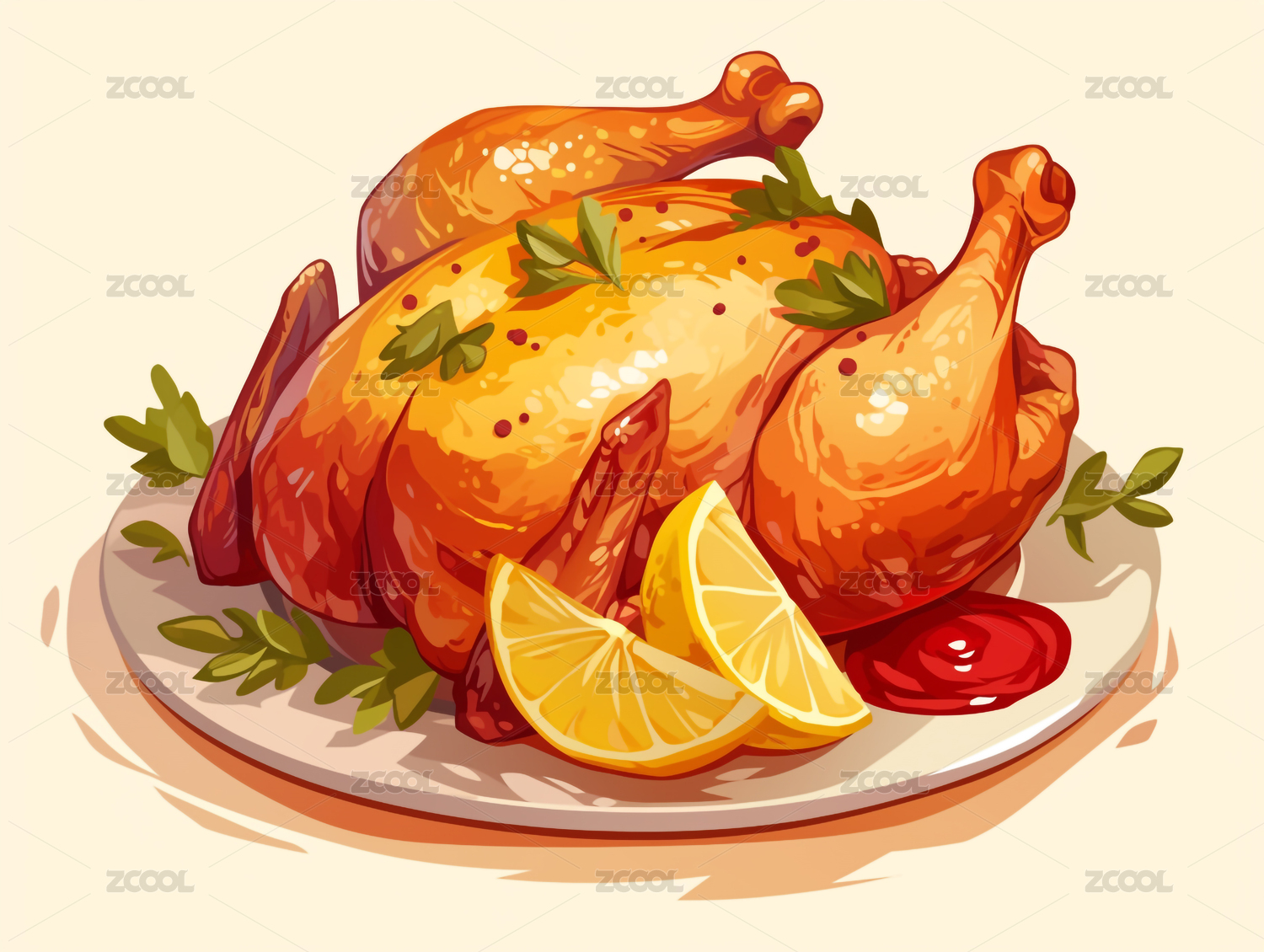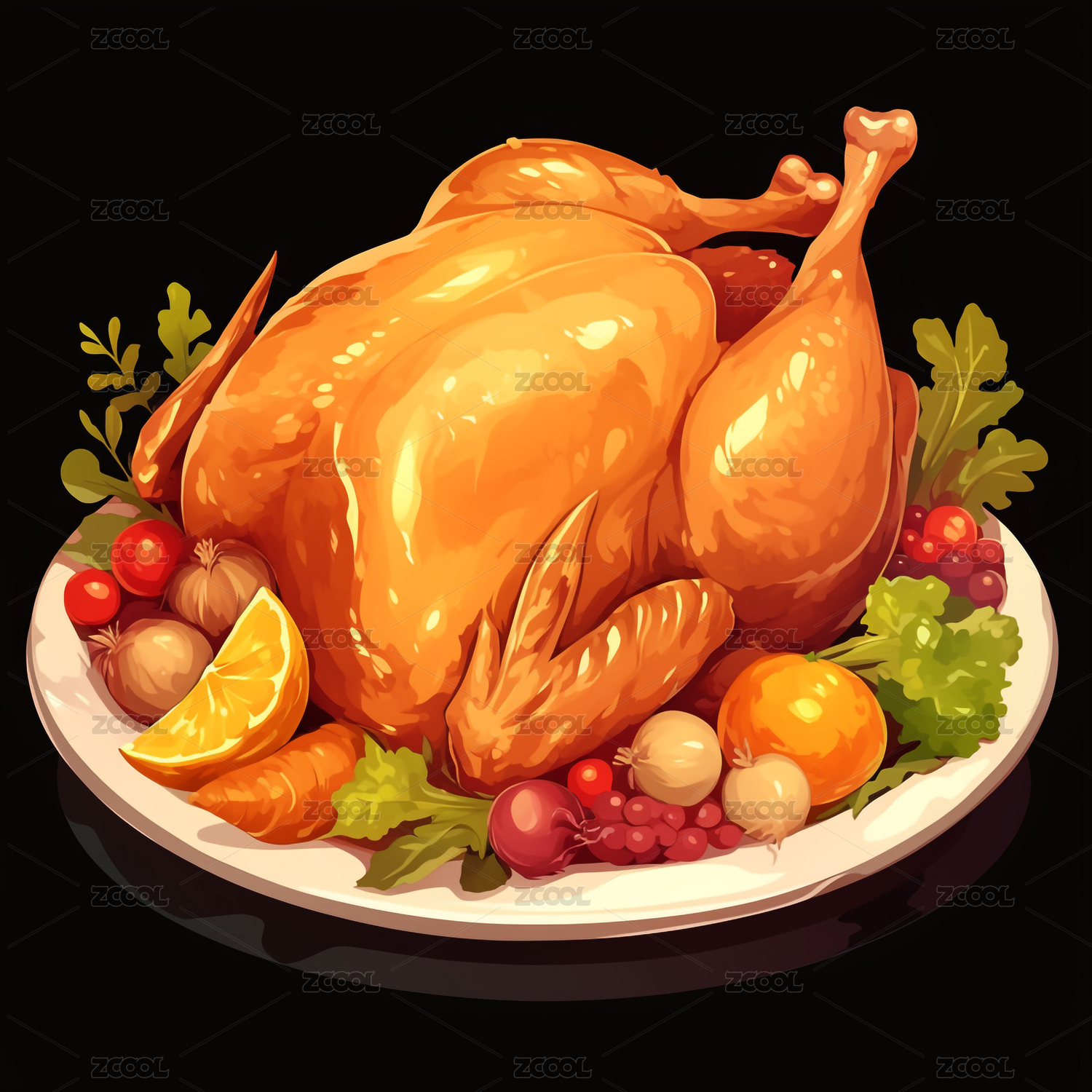 复古美式感恩节诱人的烤鸡点缀着水果蔬菜