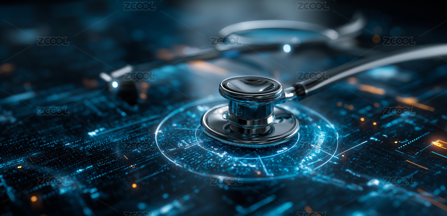 蓝色,科技,橙色,医疗,听诊器,电路板,光点,线条,银色,创新