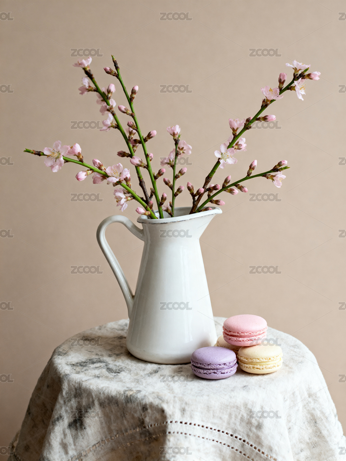 咖啡与马卡龙的春日甜点