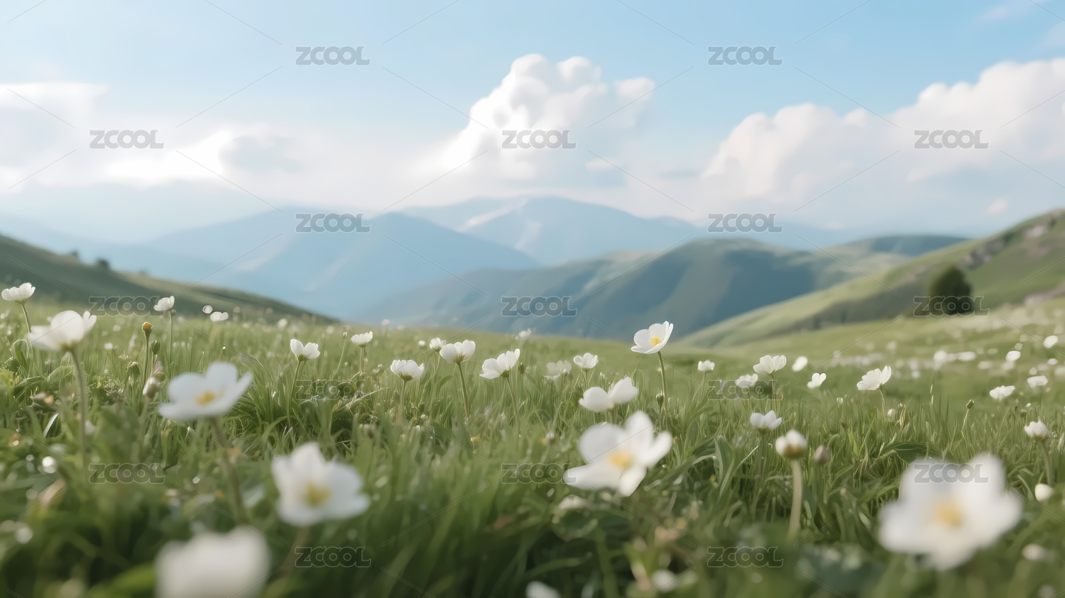 白色,背景,花朵,自然,绿色,宁静,青山,草地,蓝天,白云