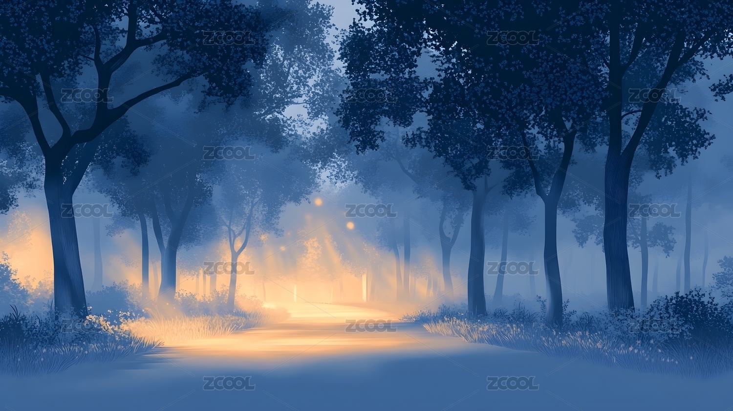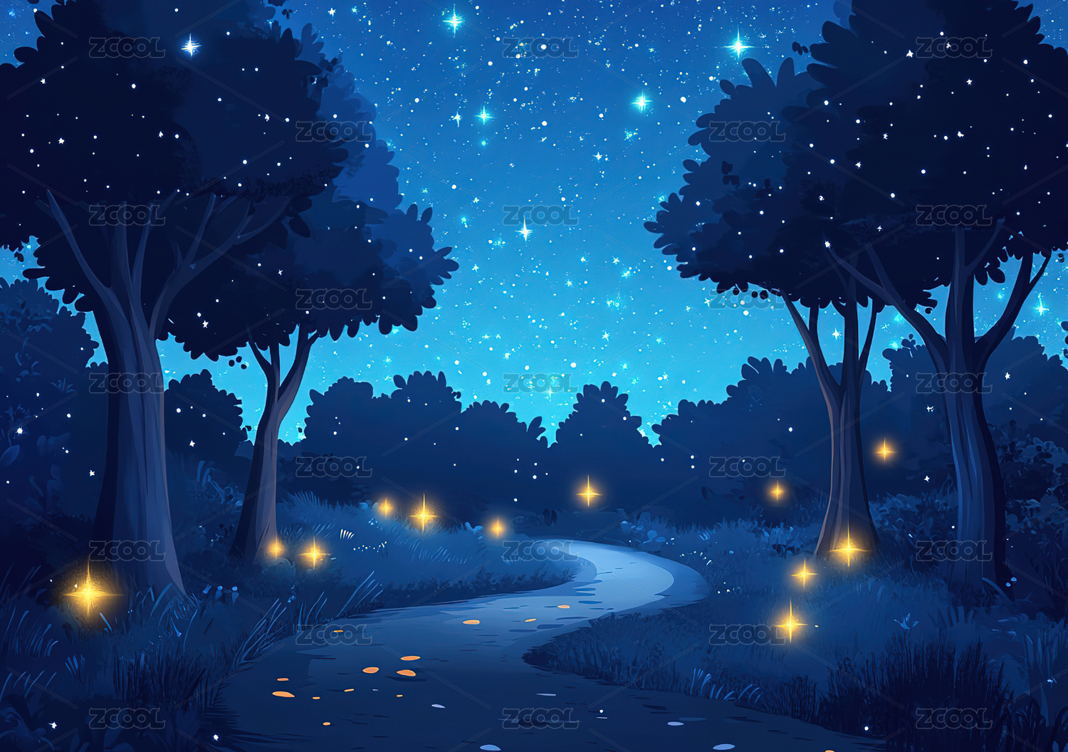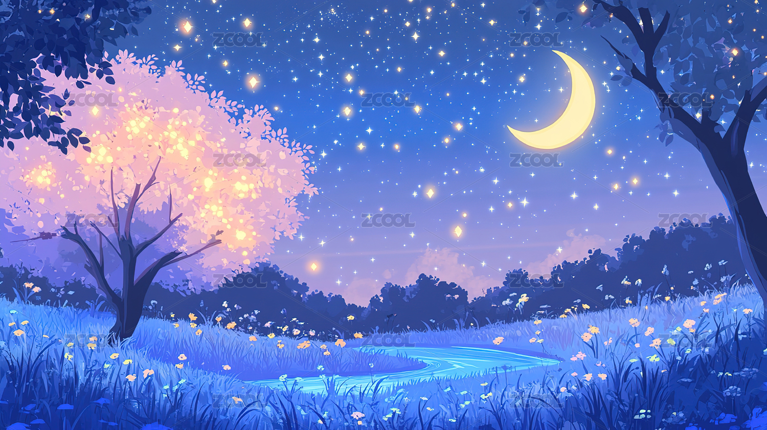 夏天傍晚自然清新治愈唯美卡通漫画AI数字