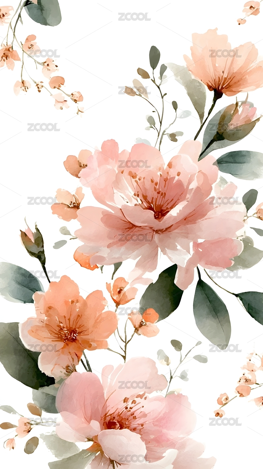 复古水彩装饰婚礼卡鲜花插画海报背景