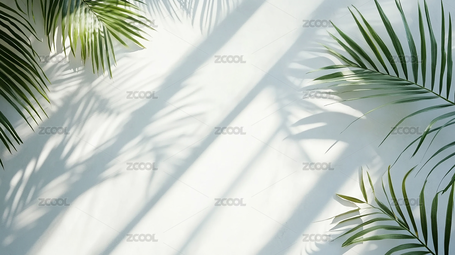 绿色夏季阳光热带植物叶子光影白墙背景壁纸