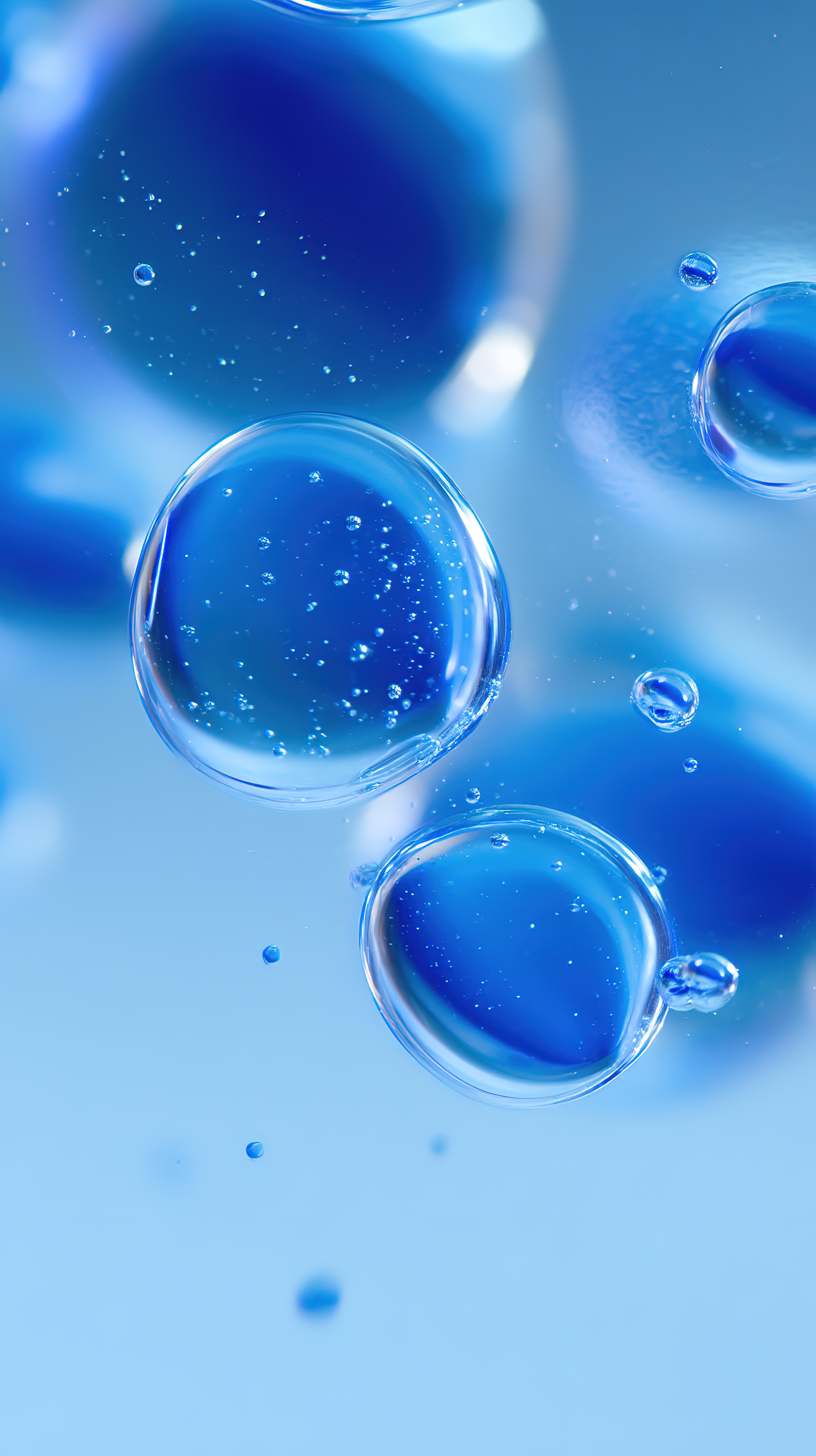 3D液体中漂浮的蓝色小气泡壁纸