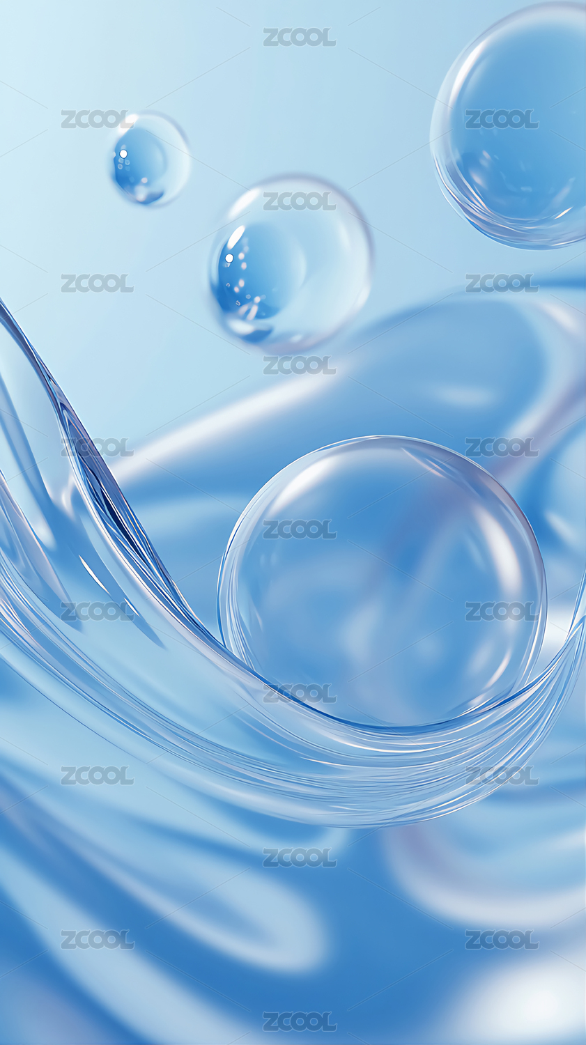 气泡,梦幻,透明,蓝色,水滴,纯净,流动,抽象,液体,清澈