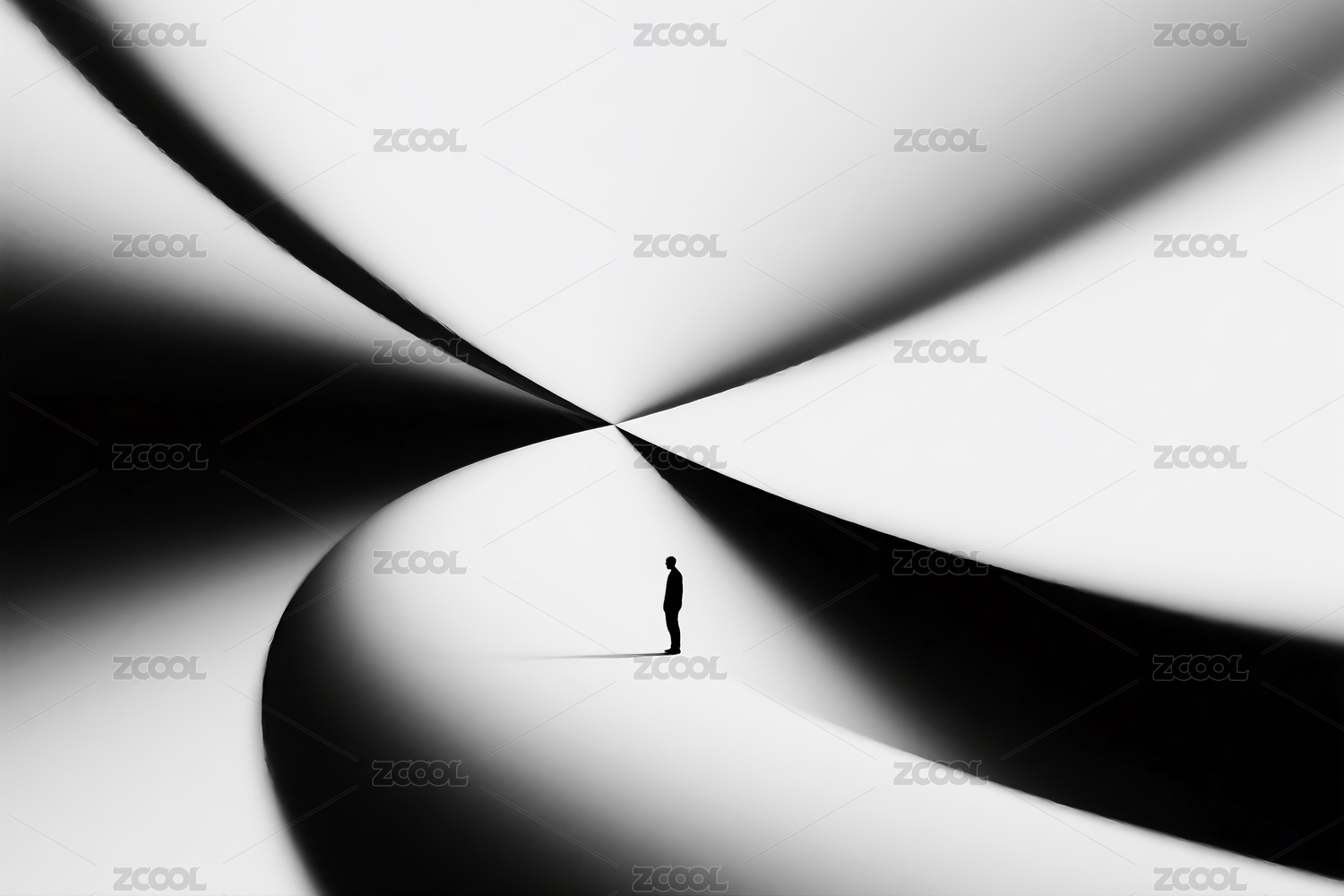 灰白背景蜿蜒道路人物图
