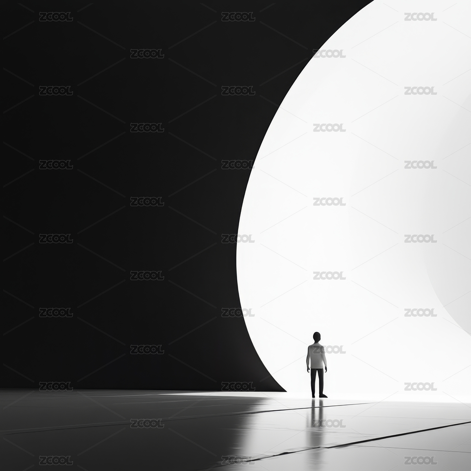 光影隧道中孤独站立的身影