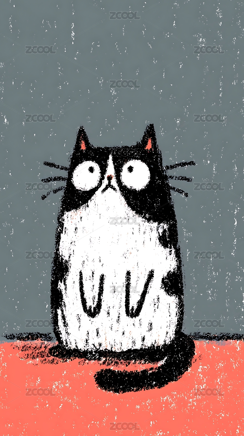 猫咪,插画,可爱,动物,萌宠,黑白,艺术,卡通,猫