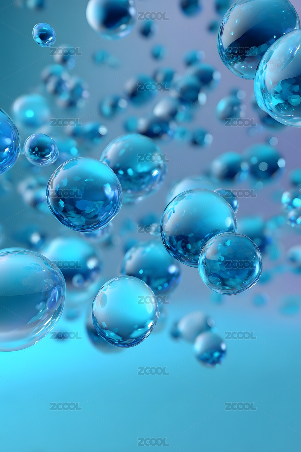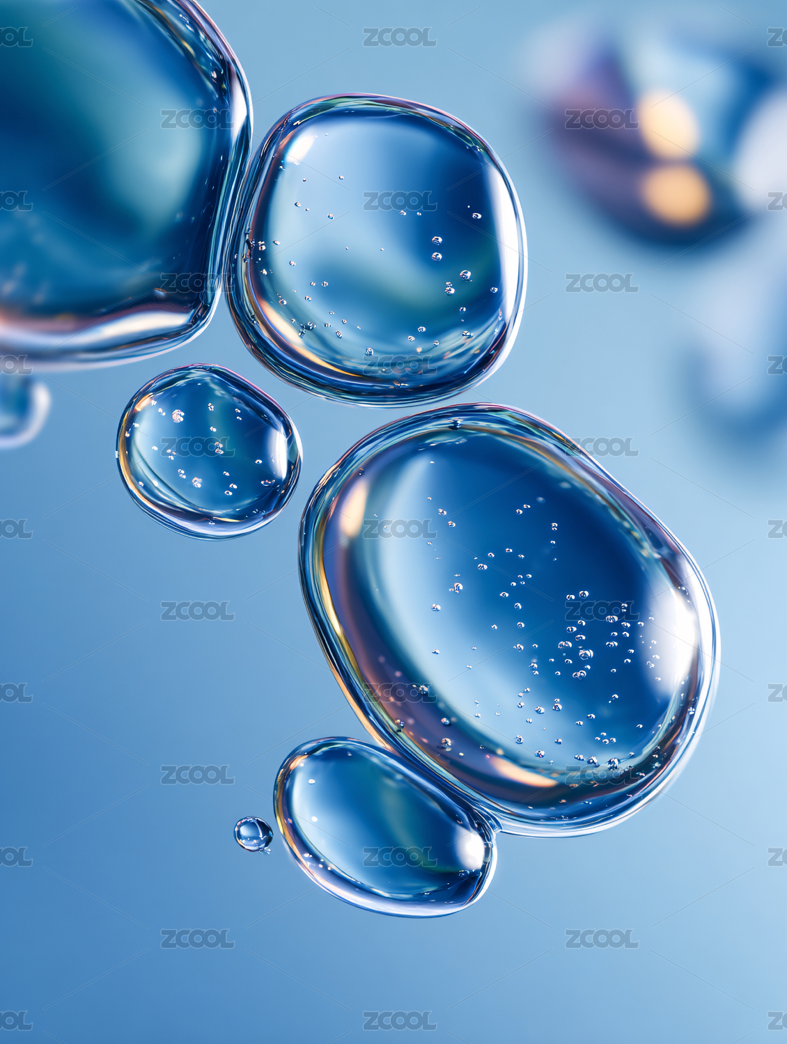 气泡,透明,液体,水珠,纯净,细节,蓝色,水滴,反光,光泽