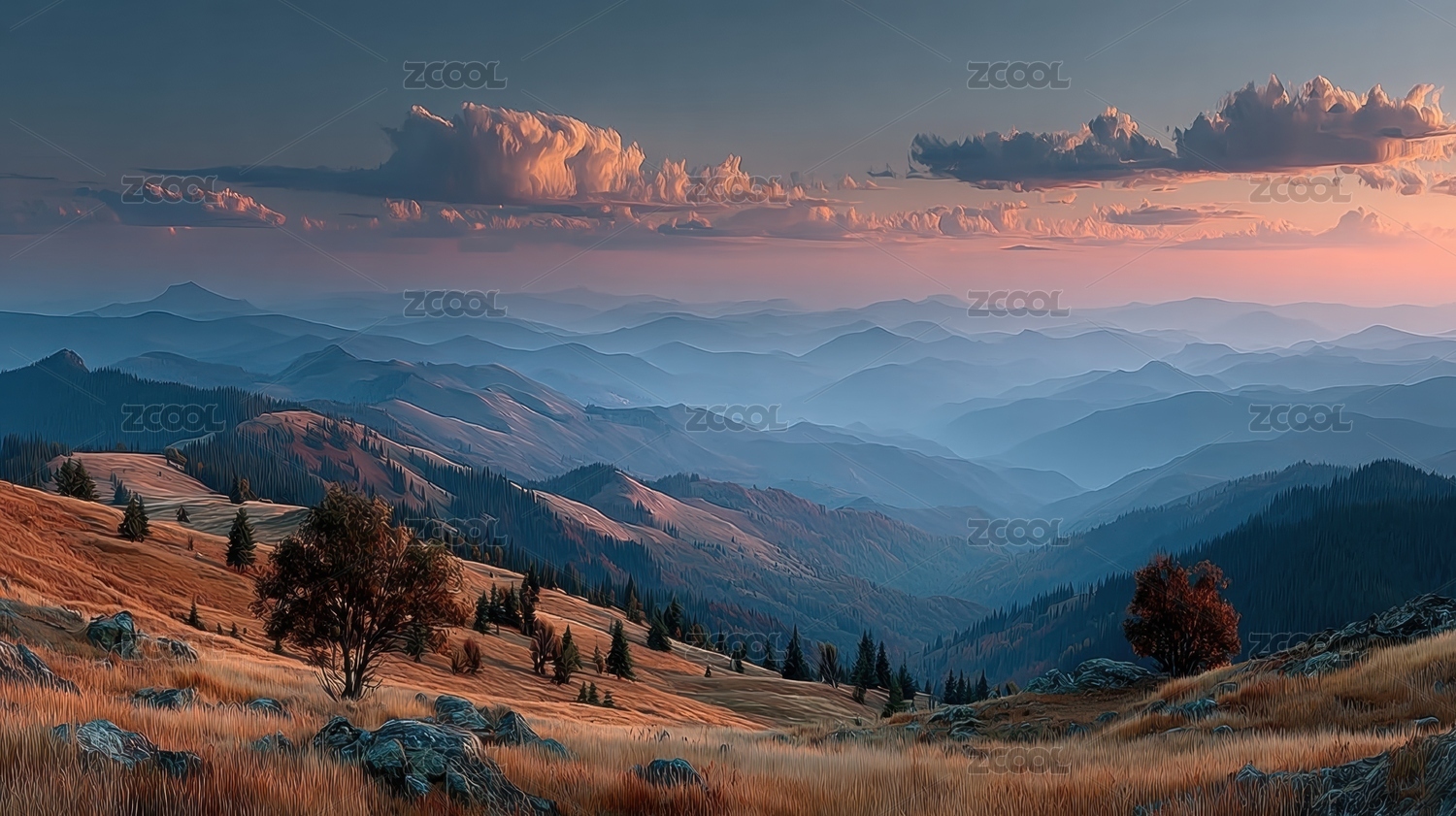 蓝色,天空,自然,云层,橙色,色彩,风景,景色,树木,阳光