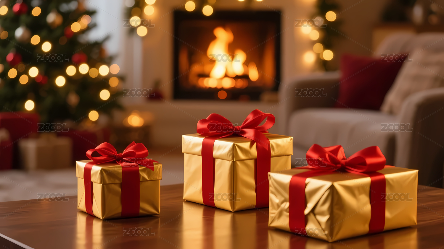 圣诞树前的礼物