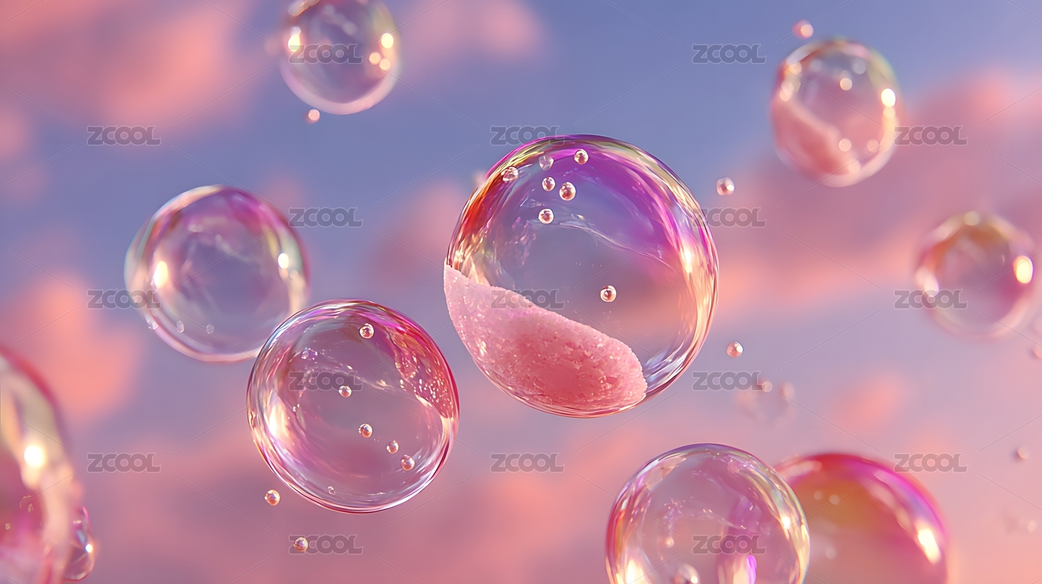 晶莹剔透泡泡置于柔纱 梦幻迷离光影