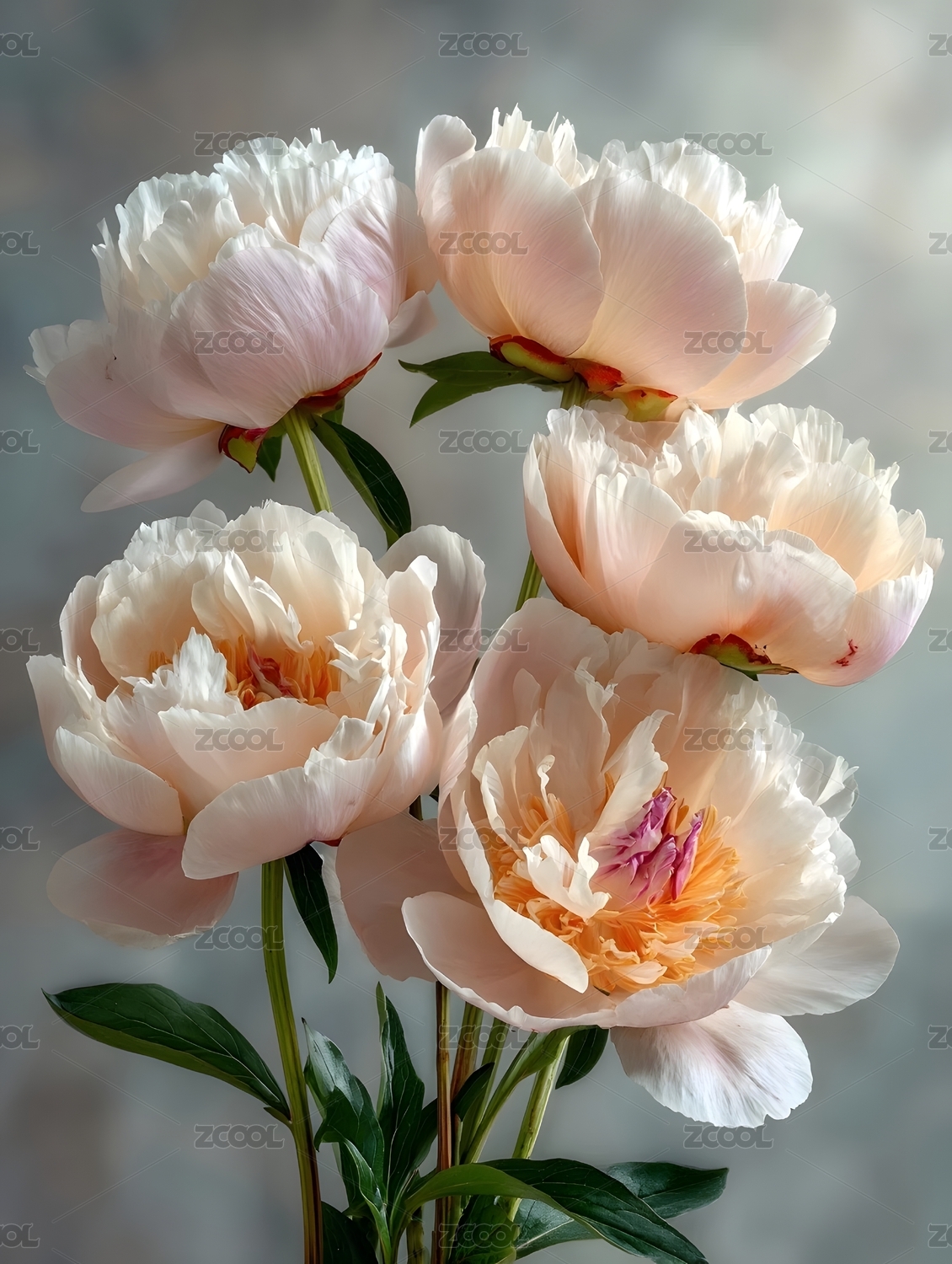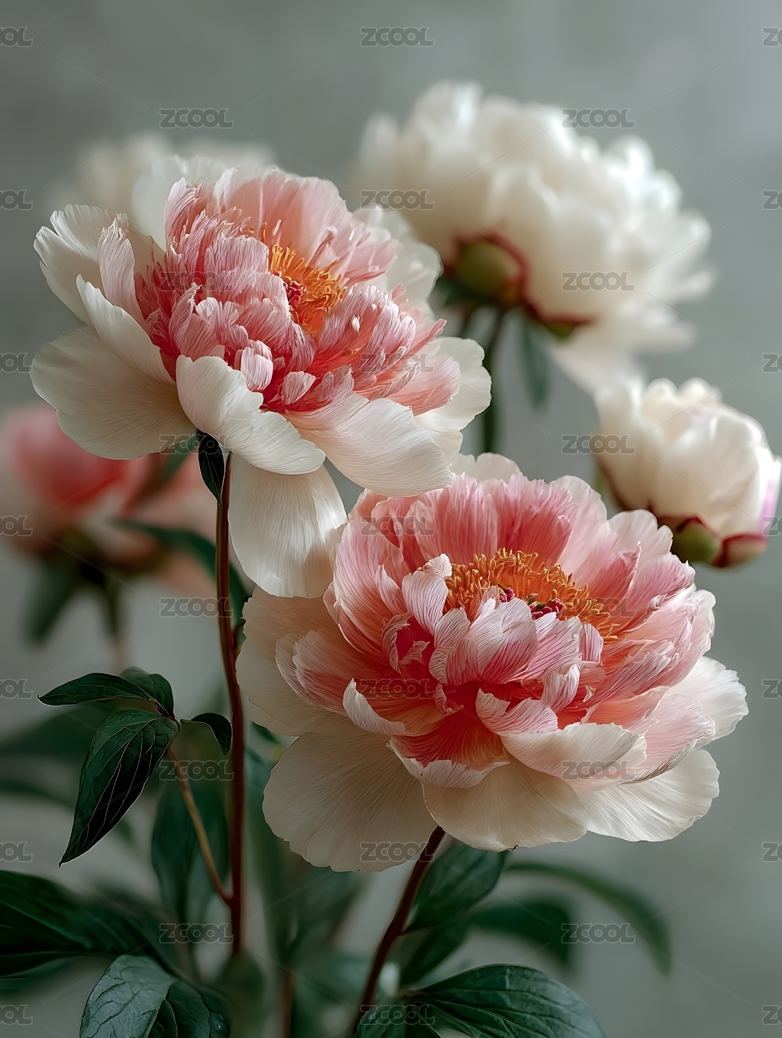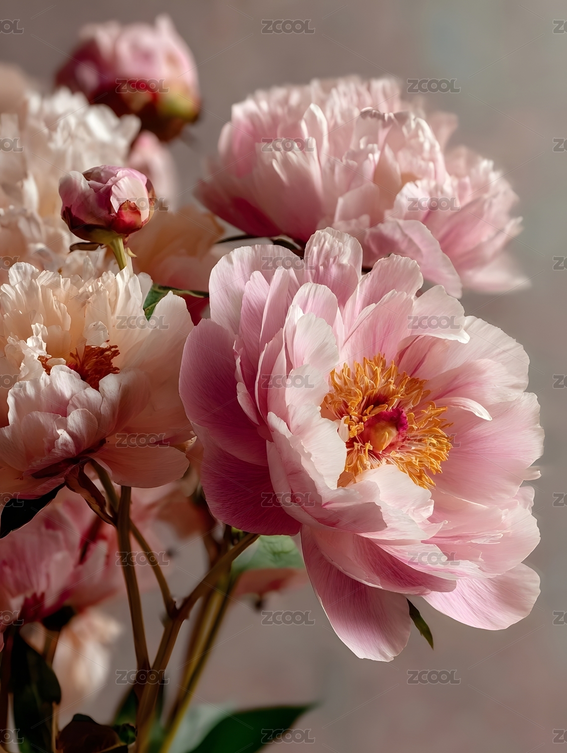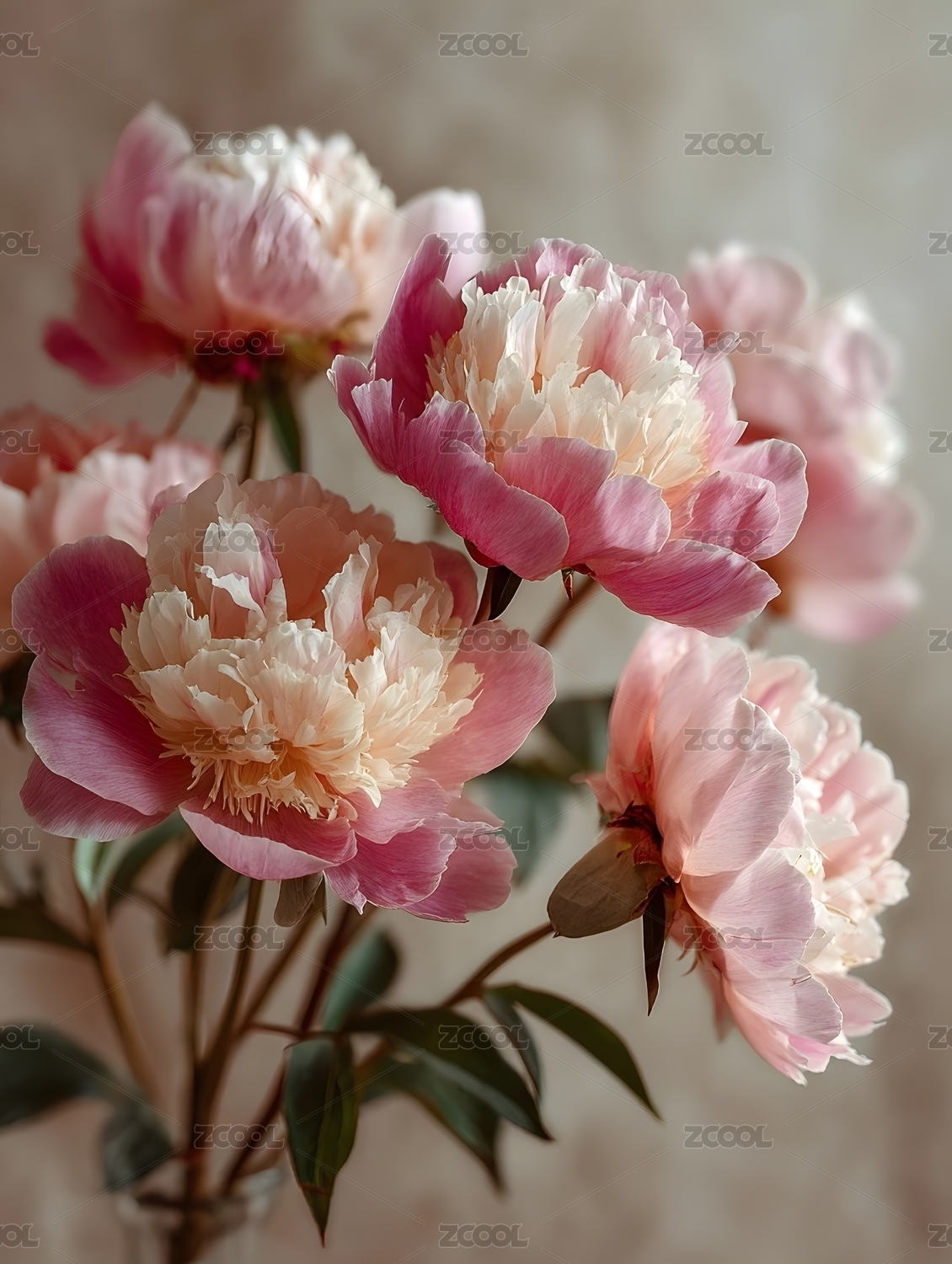 淡雅牡丹花束特写