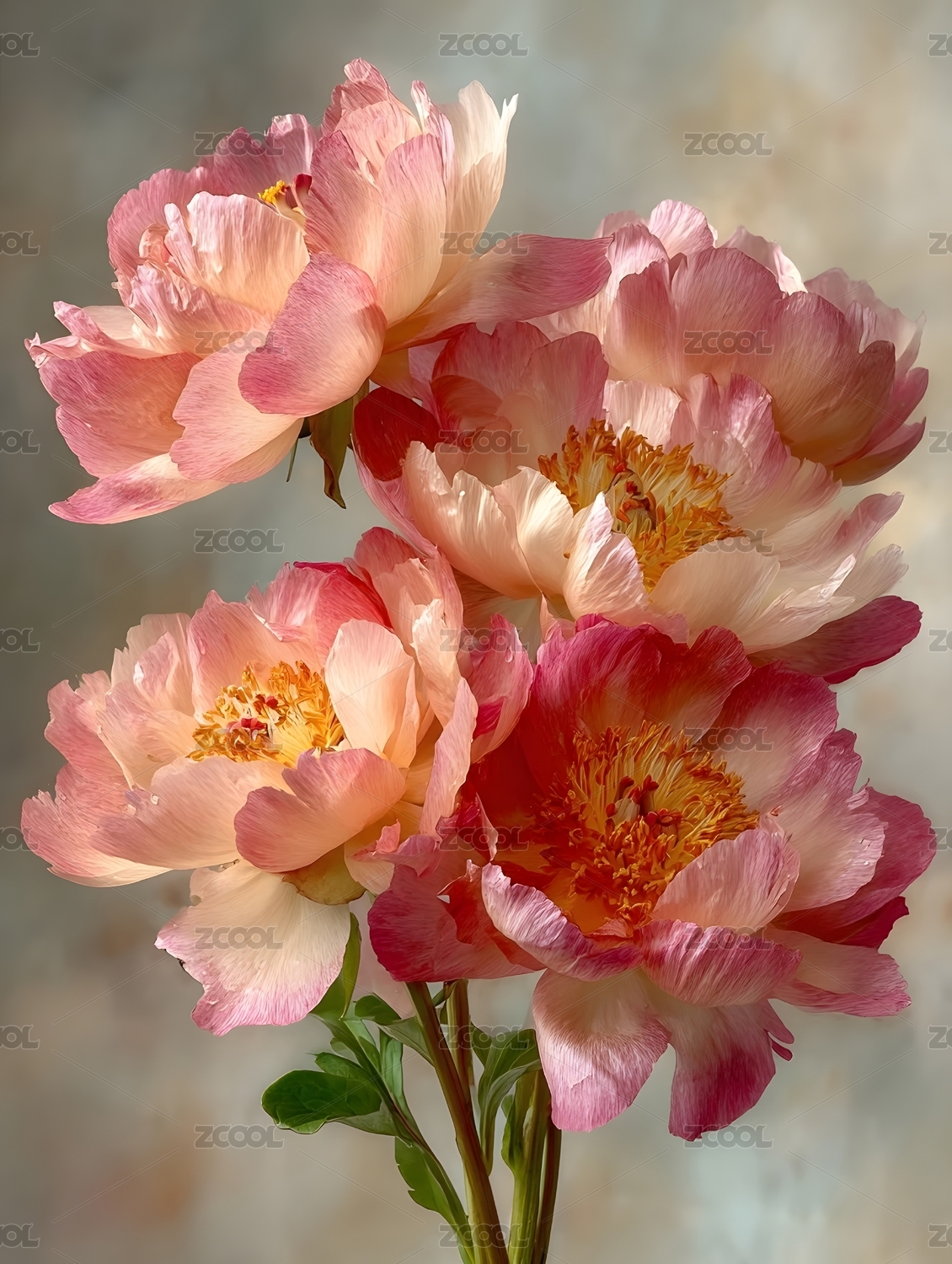 粉色牡丹花束优雅绽放