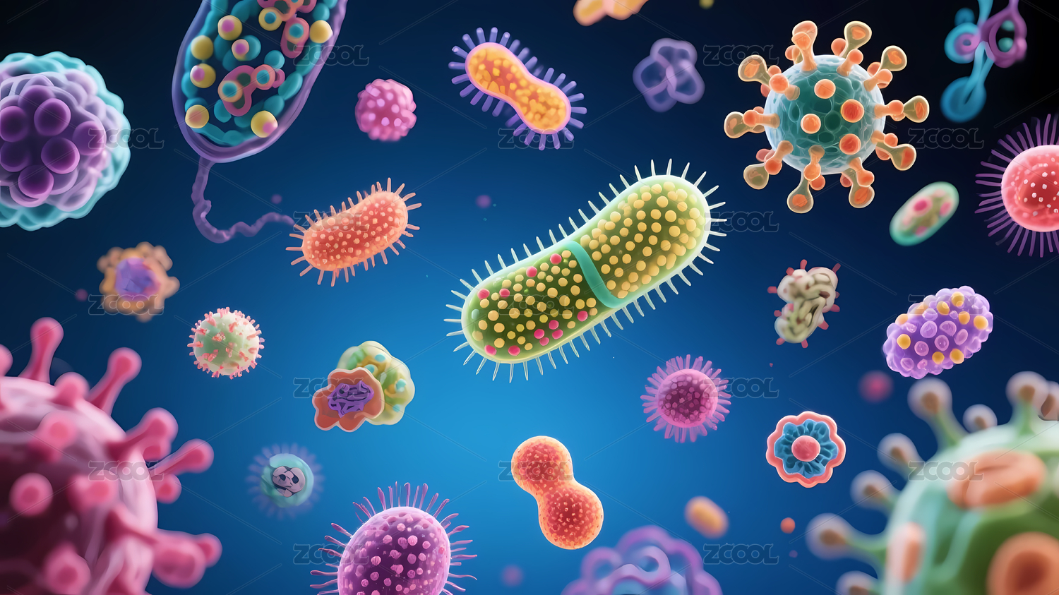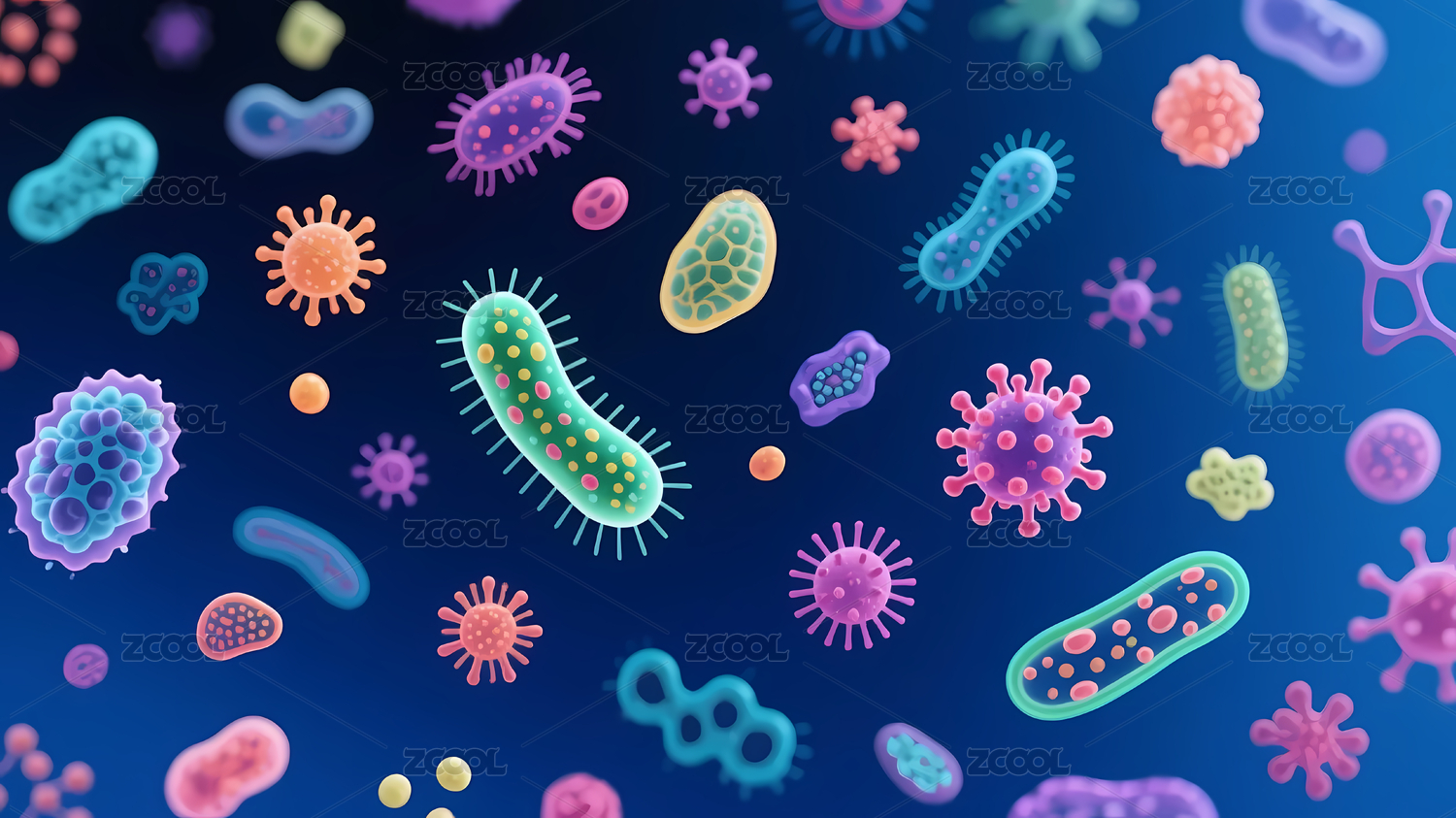 蓝色,深蓝,病毒,浅蓝,紫色,细菌,红色,绿色,活力,多样