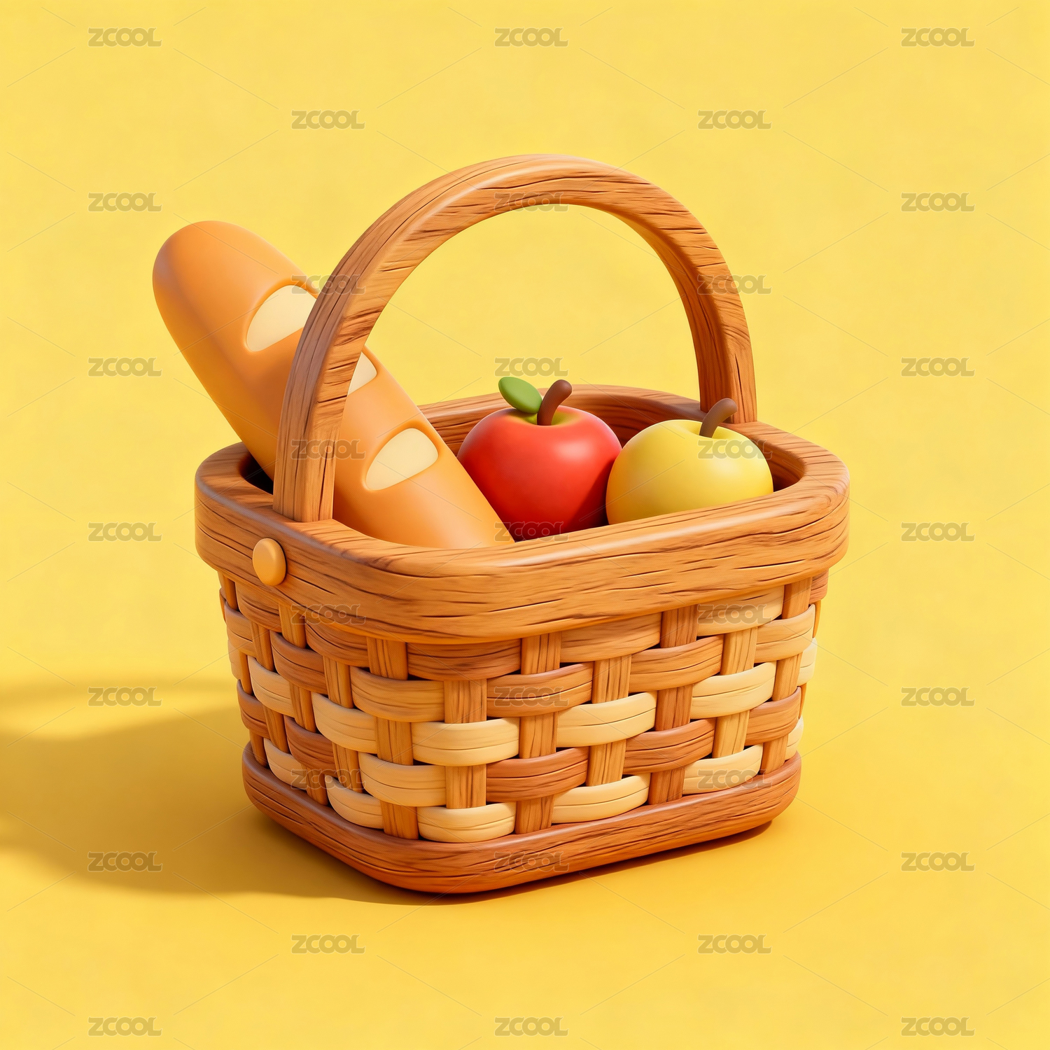 购物篮,果蔬,牛奶,插画,可爱,矢量,卡通,水果,蔬菜,画面元素