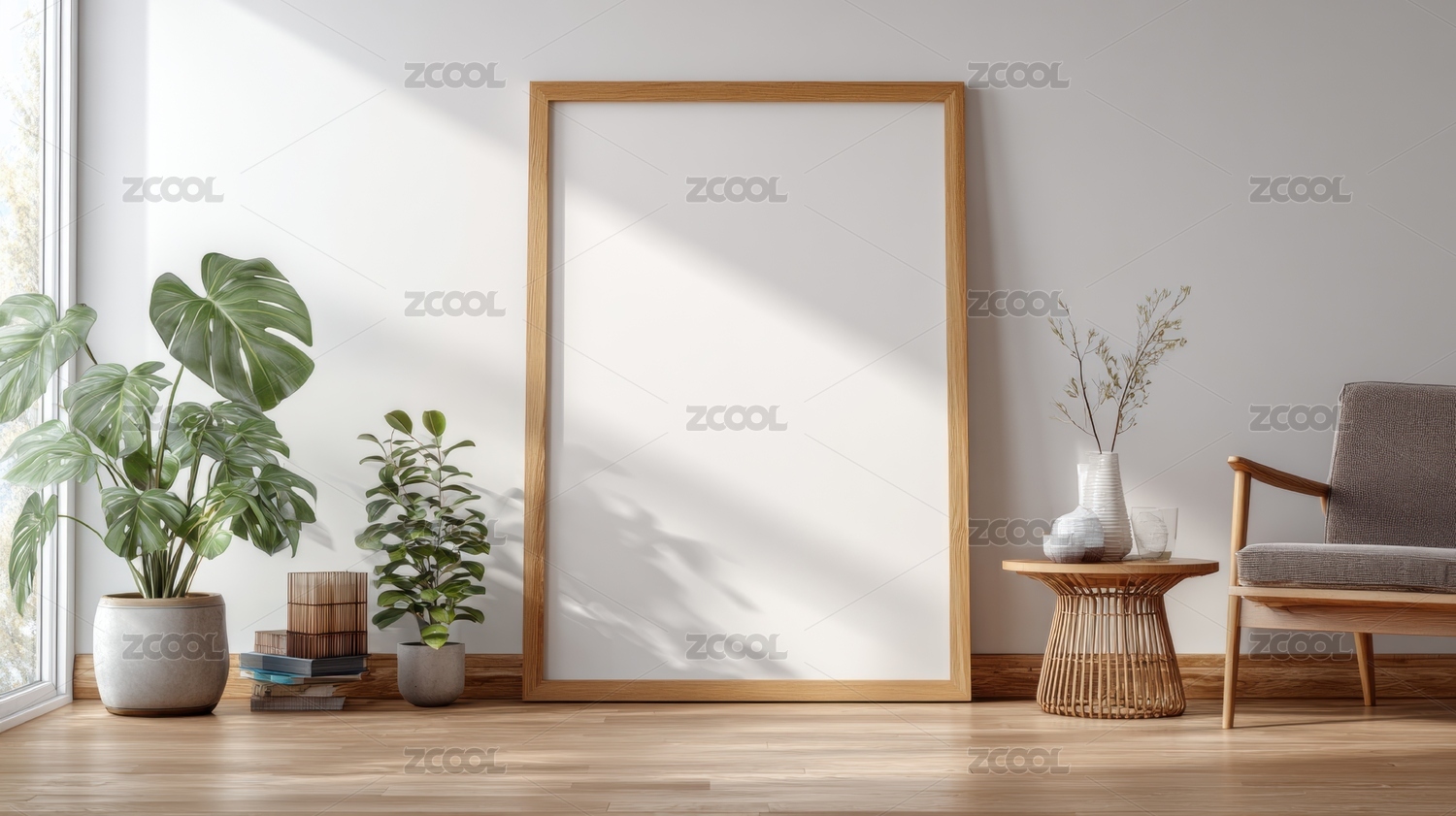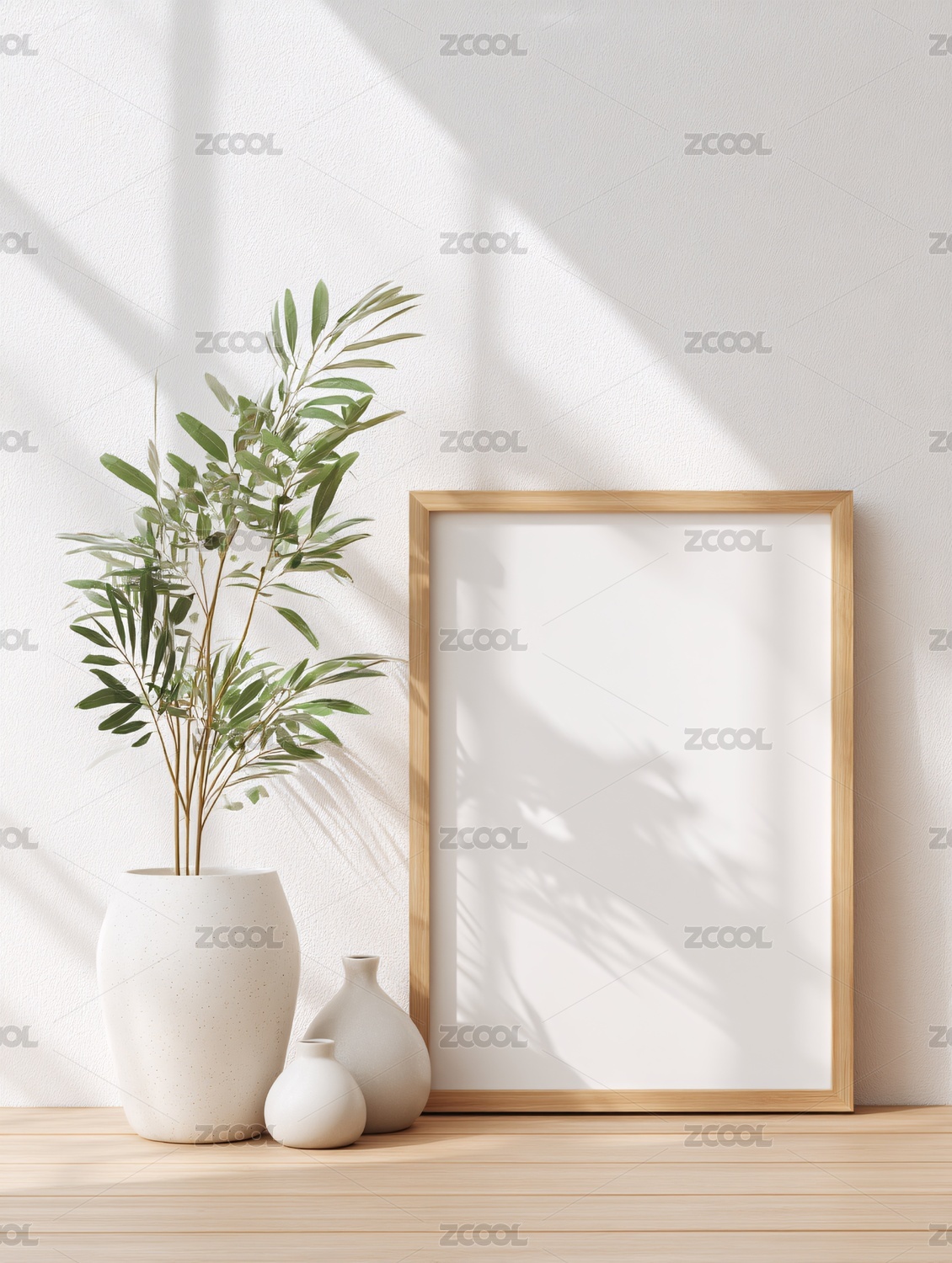室内,绿植,画框,装饰,植物,白墙,简约,场景,自然,清新