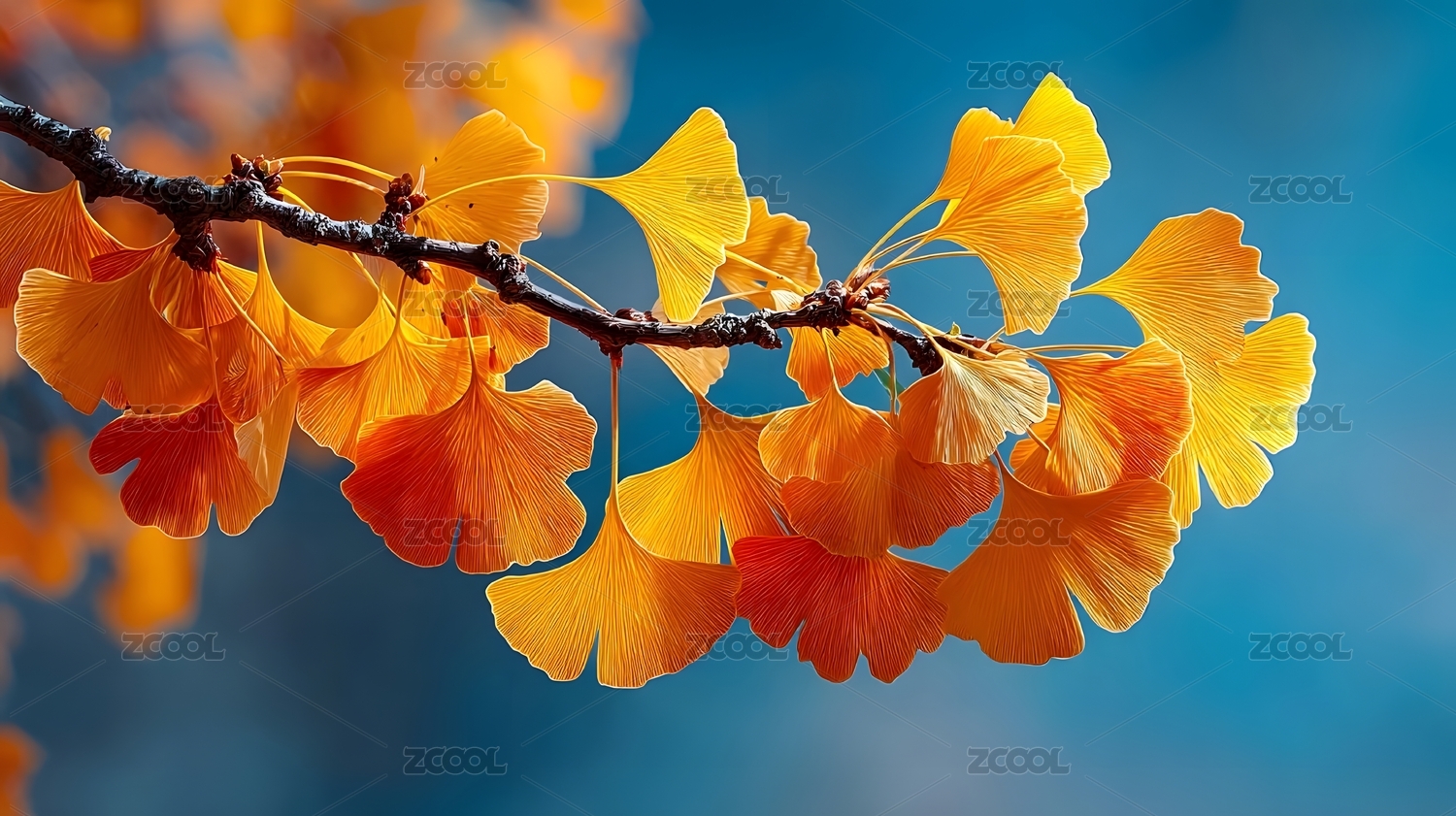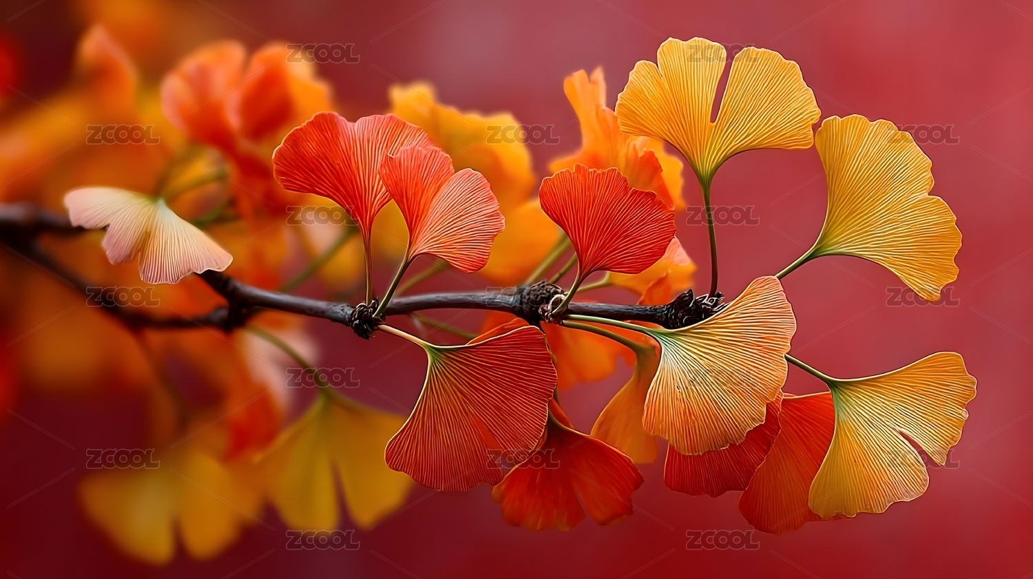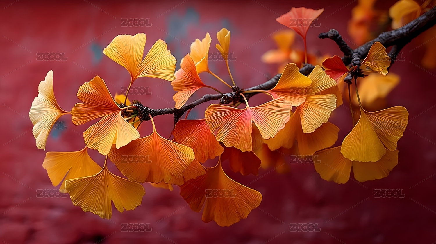自然,红色,窗户,背景,墙面,植物,暖色,银杏,叶子,枝条