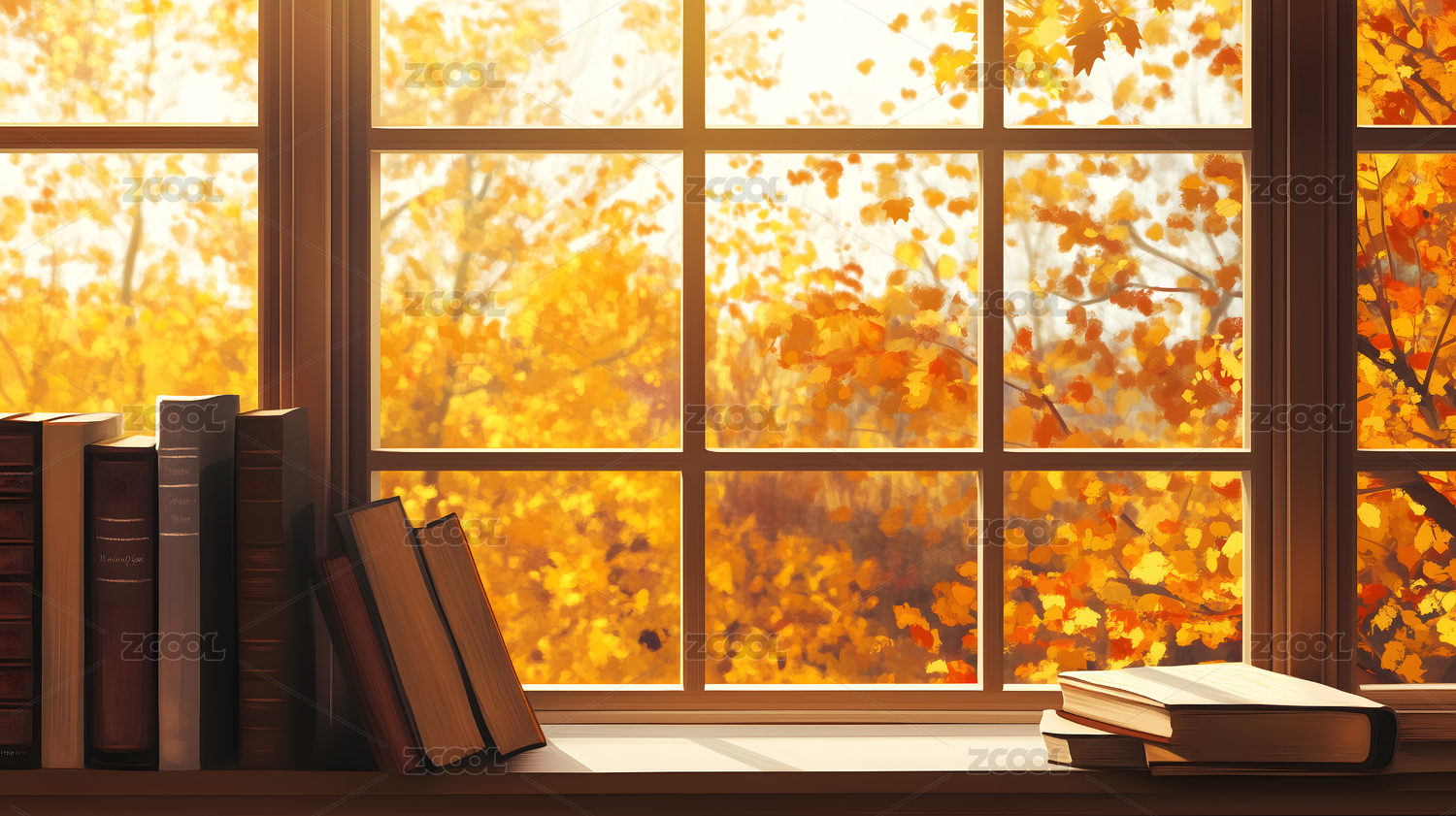 窗户外秋天的风景