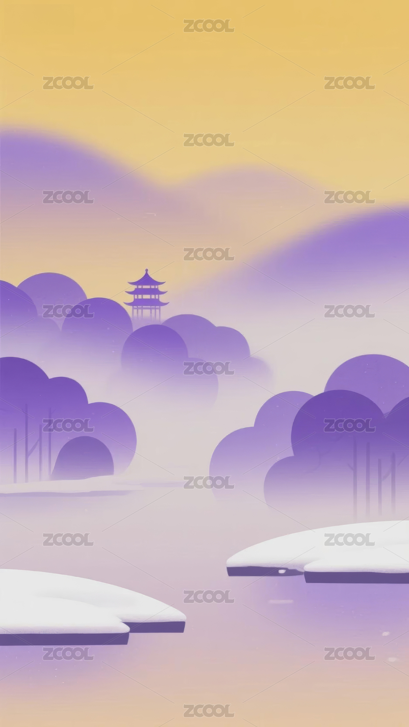 淡彩国风山水系列之冬季风光