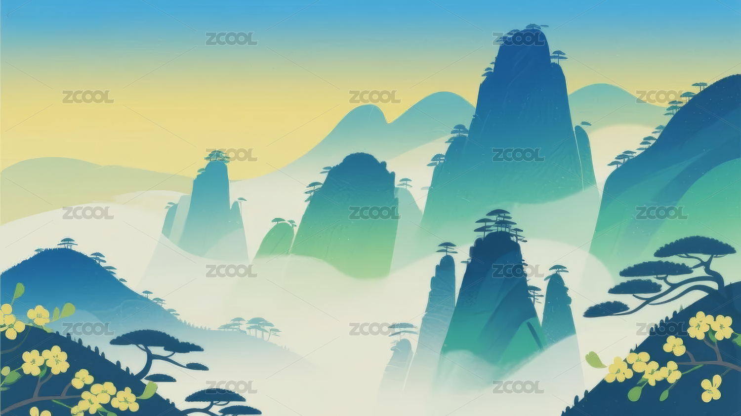 远山, 风景, 宁静, 自然, 美丽, 传统, 文化, 清新, 和谐, 蓝天