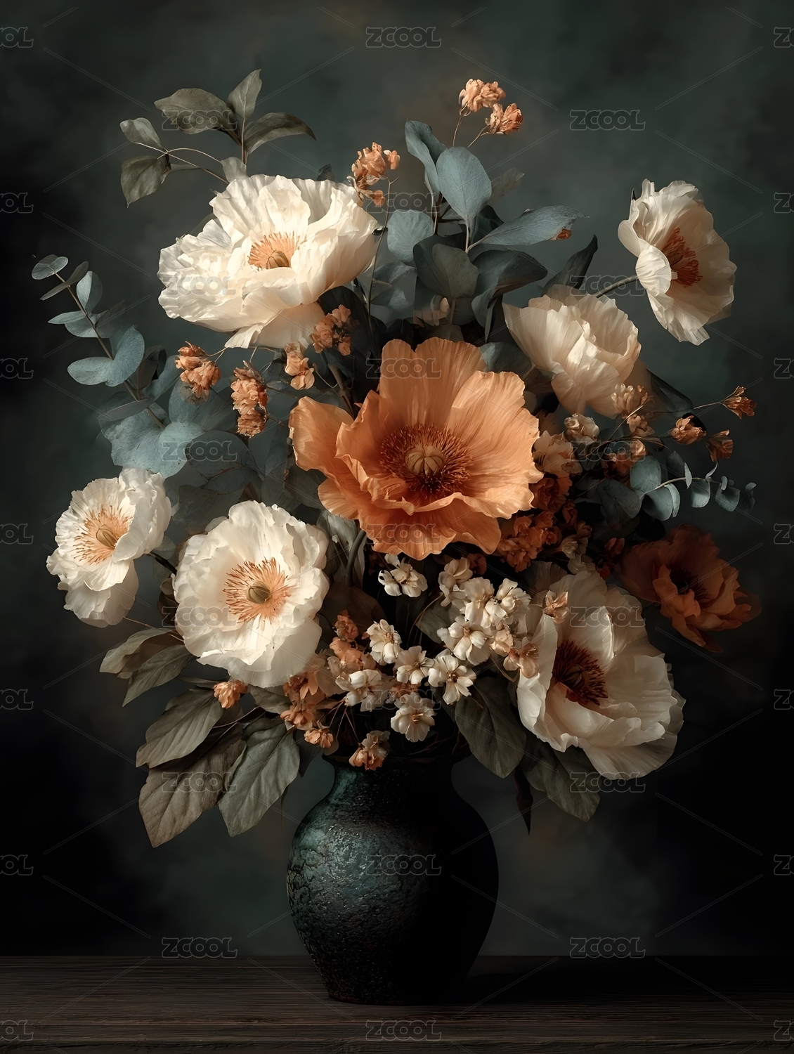 背景,橙色,花朵,白色,花束,花瓶,花卉,绿叶,花蕊,花心