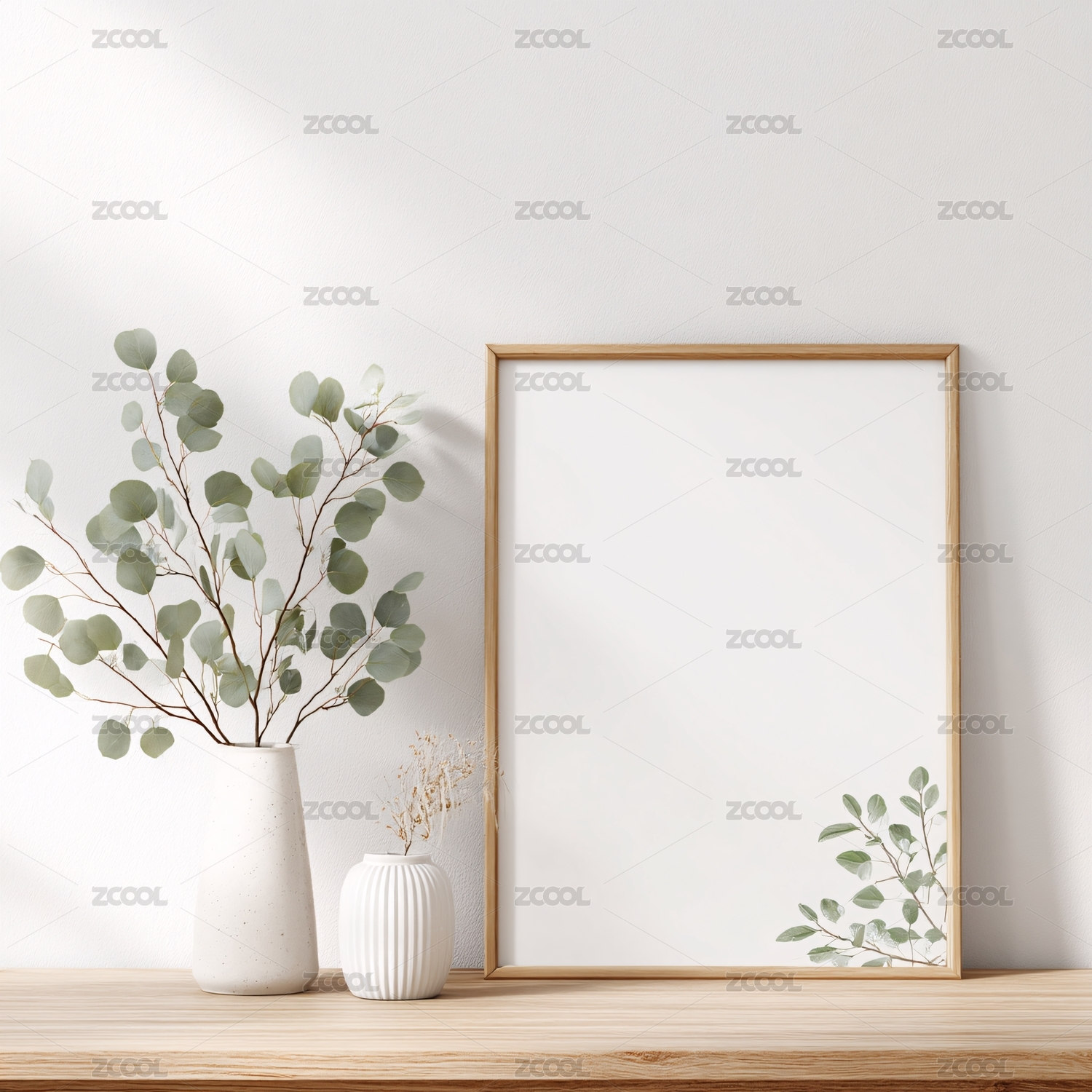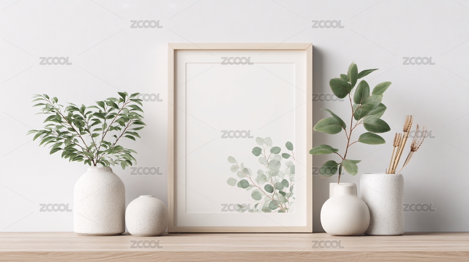 绿植,画框,木架,花瓶,插画,装饰,室内,简约,清新,自然